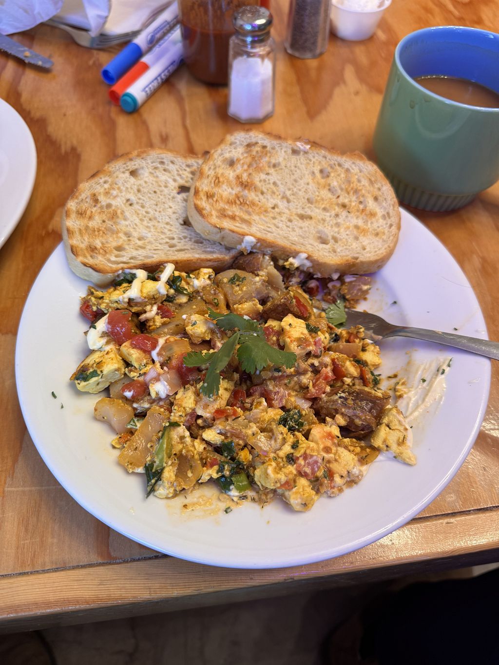 Seriously the best tofu scramble I’ve ever had; just the right amount of spice. Hardest part was walking past all the delicious donuts,scones and baked goods to order breakfast first. We got some sweet treats to go. The staff were super friendly and accommodating. They made special pancakes for the 2 yr old we were traveling with. I would eat there every day if I could. Will definitely go back next time we are in Victoria.