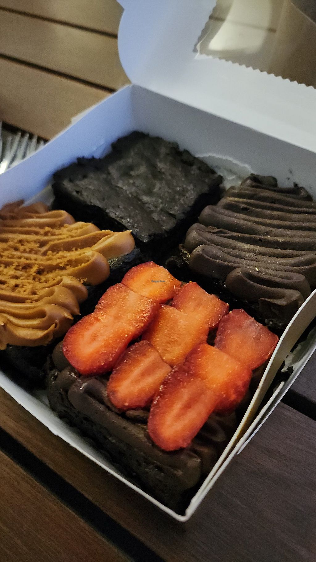 Vegan dessert shop with choices like chocolate macarons, date and walnut cake slices, and chocolate ganache brownies. Refined sugar free and gluten-free options available. Note: Takeout & delivery only, no dine-in. Open Mon-Sat 11:00am-9:00pm, Sun 10:30am-9:00pm.