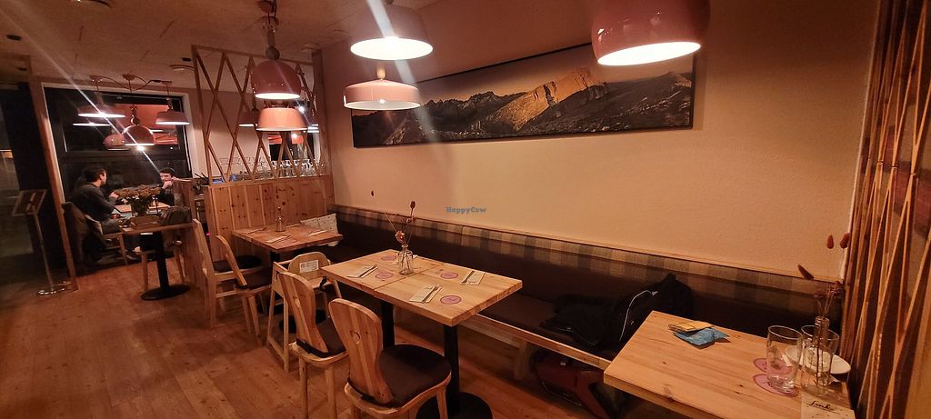 Cosy restaurant and tasty food. The vegan Knödel are clearly labled and come with soy yogurt dip.