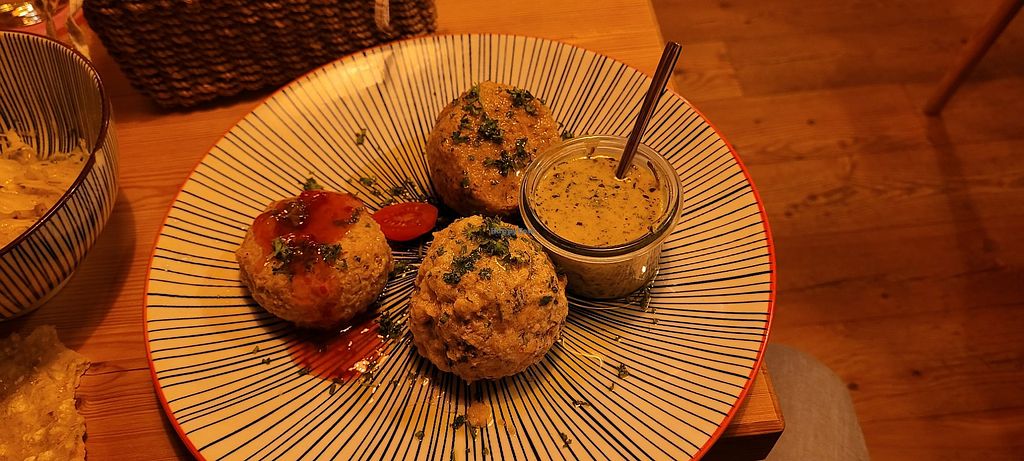 Read moreSo they offer 3 vegan knödel, herbs, leek and WOK (sweet and sour). Their website lists a forth seasonal pumpkin one but the printed menu does not list it as vegan and I asked the staff and they told me it contains eggs, so just 3 savory options (Edit: they confirmed by email that the seasonal pumpkin is vegan -.-, so I'm not confident in the staff knowing too much about the ingredients). While they are surely good I did not like them at all without any sauce, they were too dry for me. So I just ate 4 dry knödels without any sort of sauce (except for the really small portion of sweet and sour sauce that came with the WOK knödel).