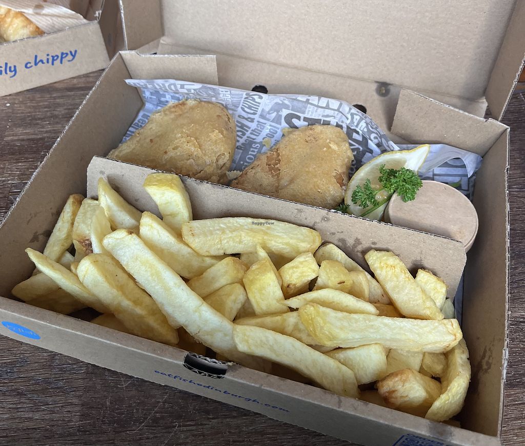 Ordered the tofish and chips, vegan haggis fritters and everything was delicious. Our order included non vegan food, but everything vegab was perfectly labeled to tell it apart. Will definitely order again.