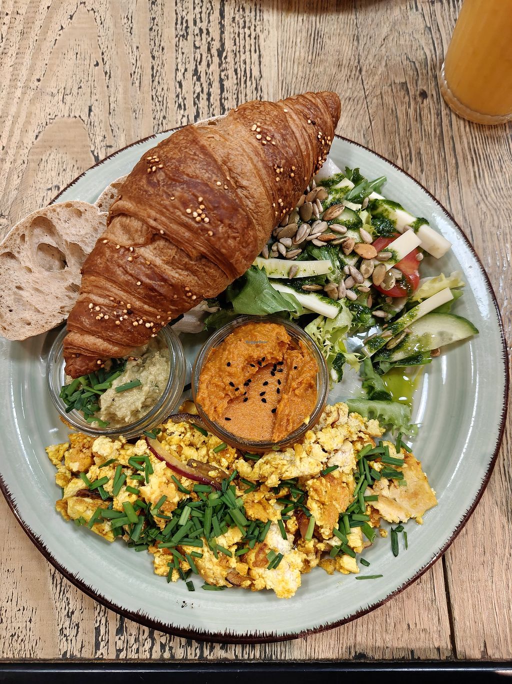 I liked the choice - lots of fresh fruit/vegetables in the dishes on the menu. You can pick from something lighter or more filling. Went there twice. Had a wrap which I loved so much and the vegan power plate. I preferred the wrap, it was overall tastier with the vegan power plate the scrambled tofu and the peas paste were under seasoned for my taste, but the bread and the croissant were very good. Would definitely eat there again