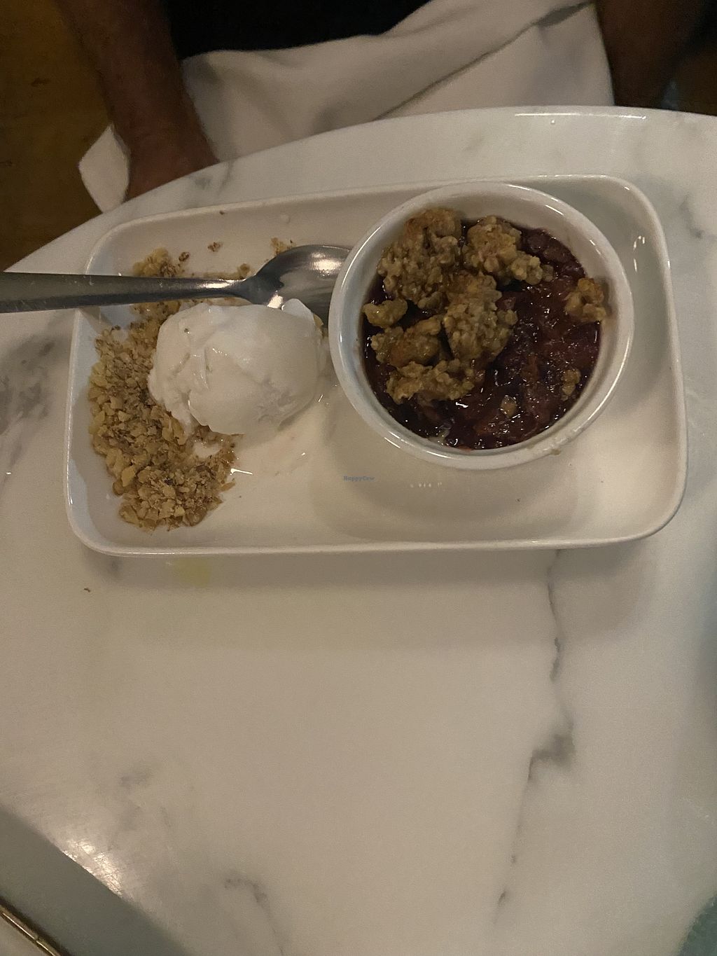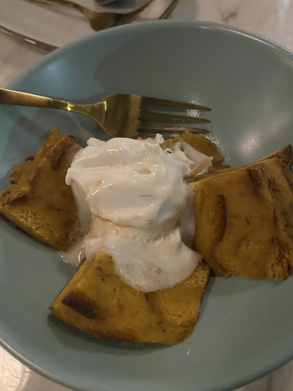 This place ranks up there with the best vegan restaurants we have ever been to so far. Everything was fresh made, so no “fake” meats. Their twist on some of the usual vegan dishes you might find elsewhere is what sets them apart. Everything was perfectly seasoned and delicious. I started out with the lavender lemonade, which I highly recommend. We had crispy broccoli with pomegranate seed, curry and carrots, along with marinated olives for appetizers, or “tapas”. For our big plates, we had the eggplant and the gnocchi and cheese, which is a spin off of macaroni and cheese. The best I’ve ever tasted. For dessert we had brioche bread pudding, and sour cherry fruit crisp. They serve French press coffee at the table. We had a corner table by the window, and it made for a perfect setting to enjoy our meal. The server was phenomenal. I can’t say enough good things about this place.