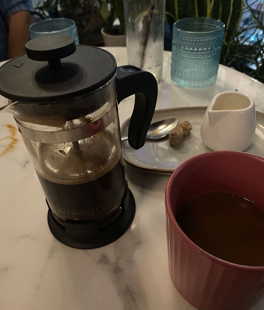 The raw-vegan brownie was interesting. French press coffee was nice.