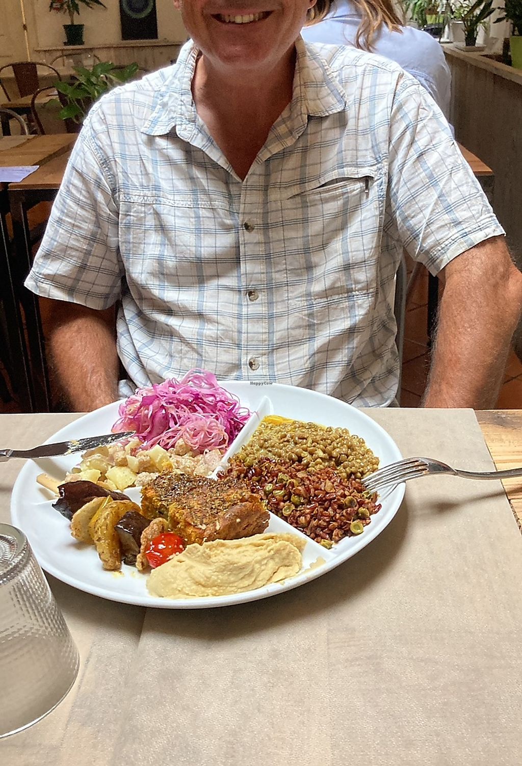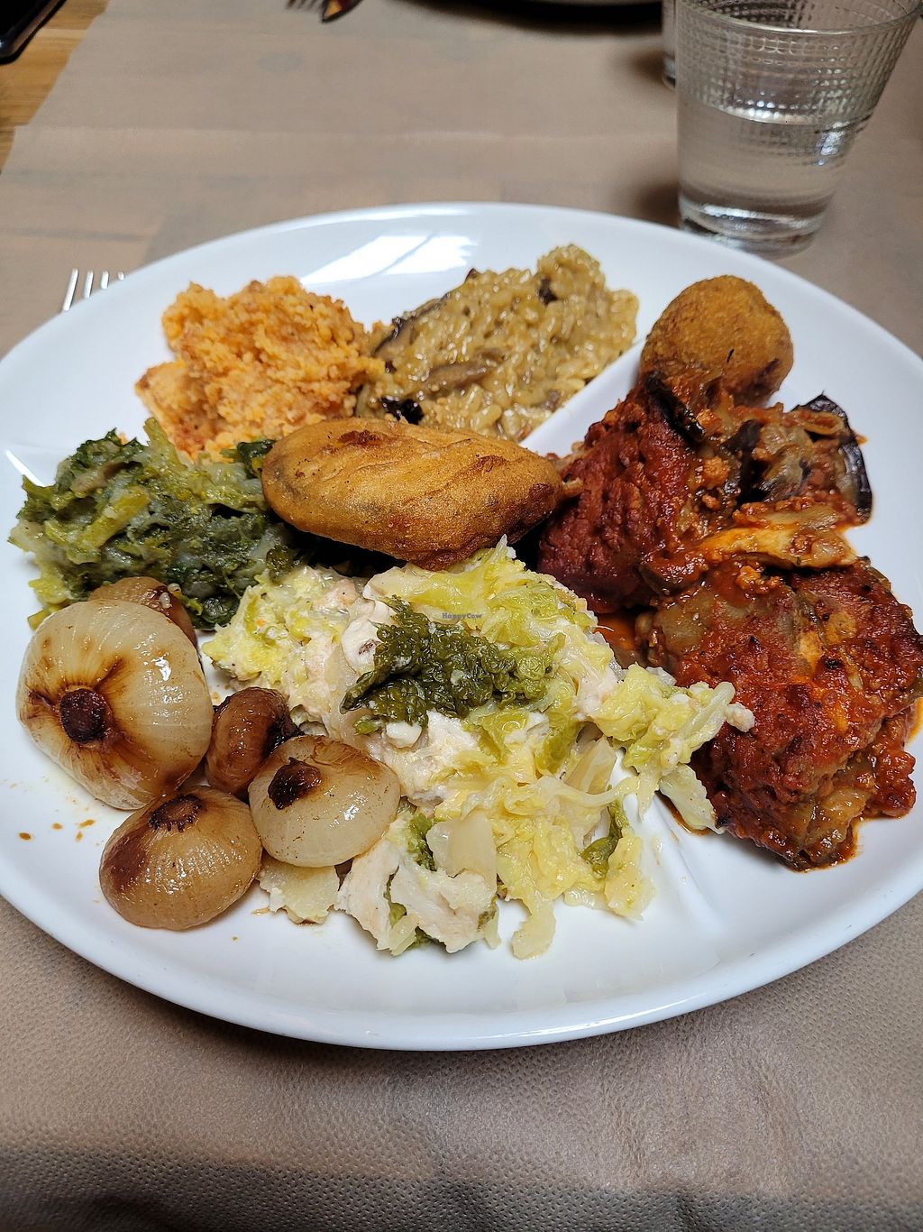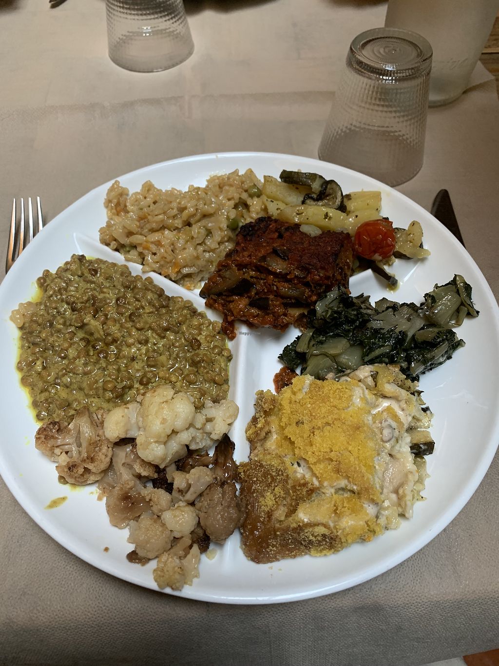 Risotto with mushrooms, mix of legumes, zucchini with capers and olive…