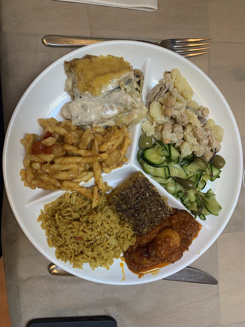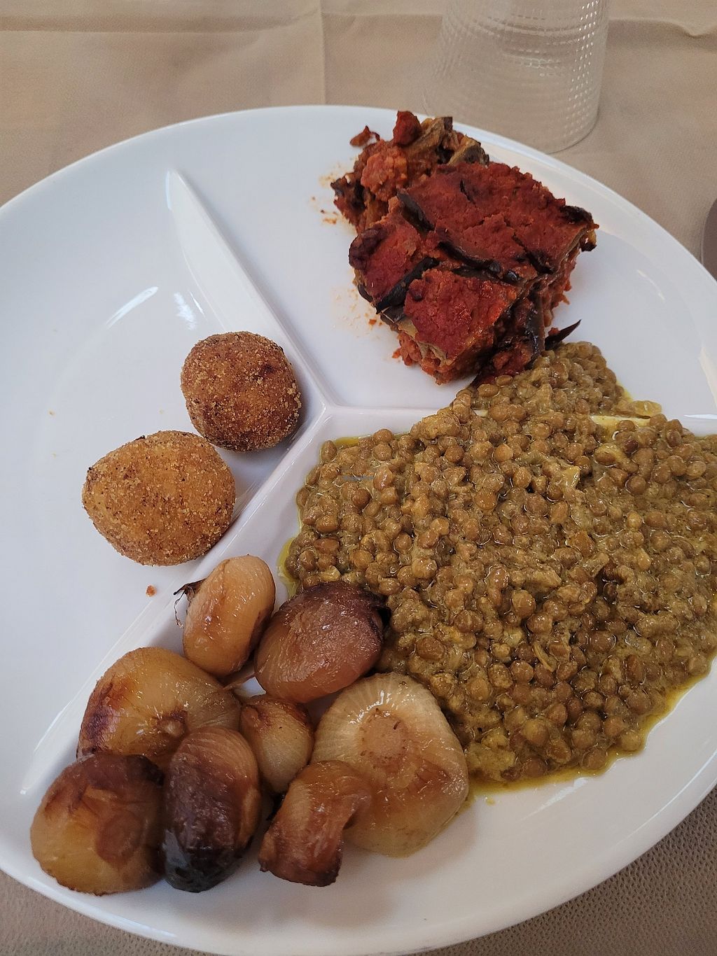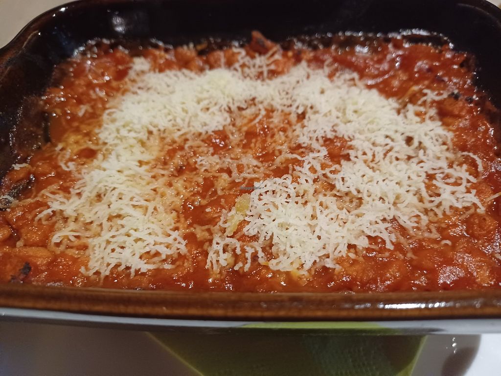 Parmigiana flora, potato gratin, pasta with potatoes, rice with peas
