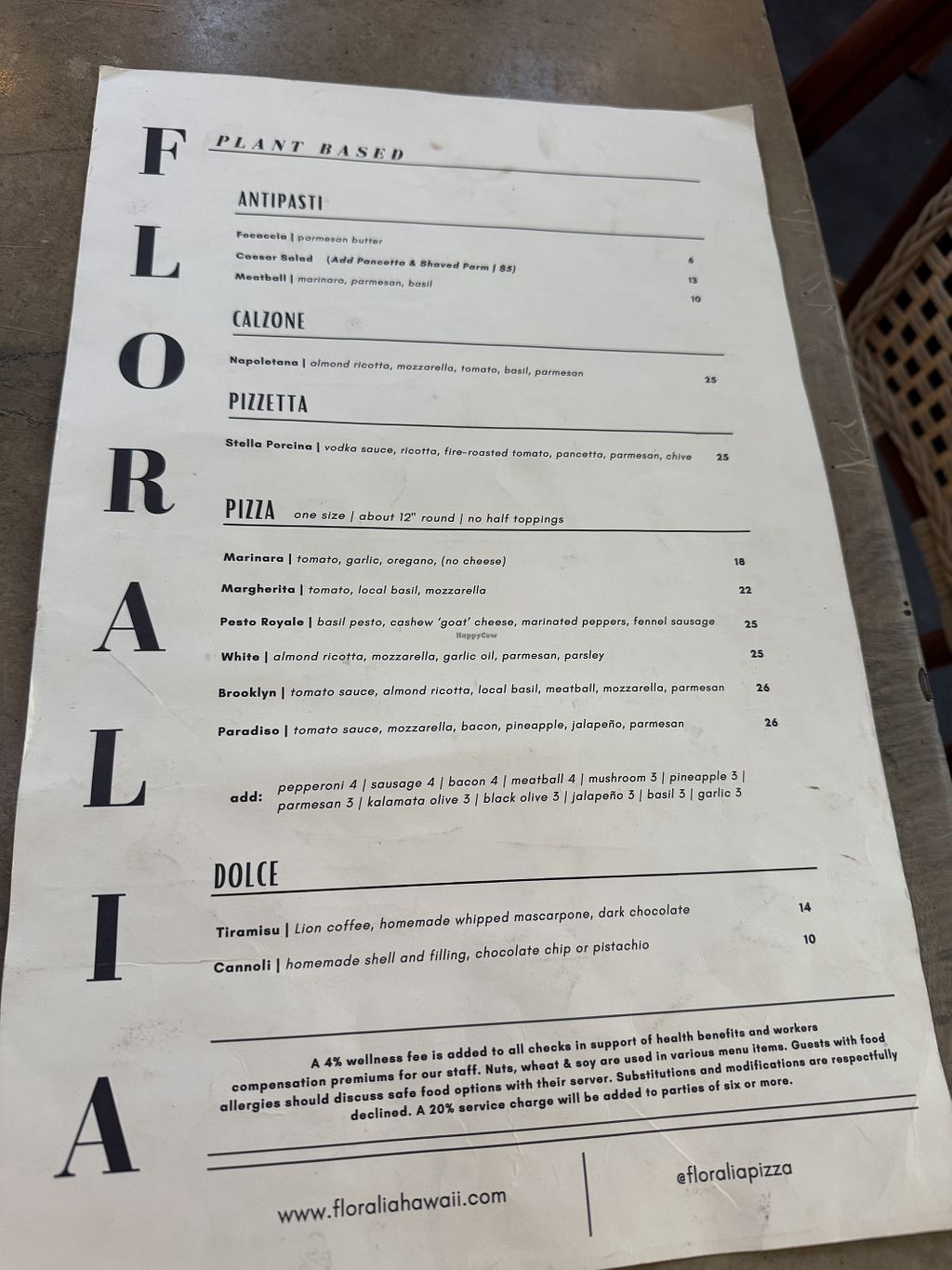 My favorite vegan restaurant on Oahu. I love the laid back atmosphere, outdoor seating, the service, and the quality of everything on the menu. Dinner for our family of four was four pizzas (Margherita, Pesto Royale, and two Brooklyn’s) and one dessert (tiramisu) to share, plus drinks. We are above average eaters, and that was plenty. Will definitely be back.