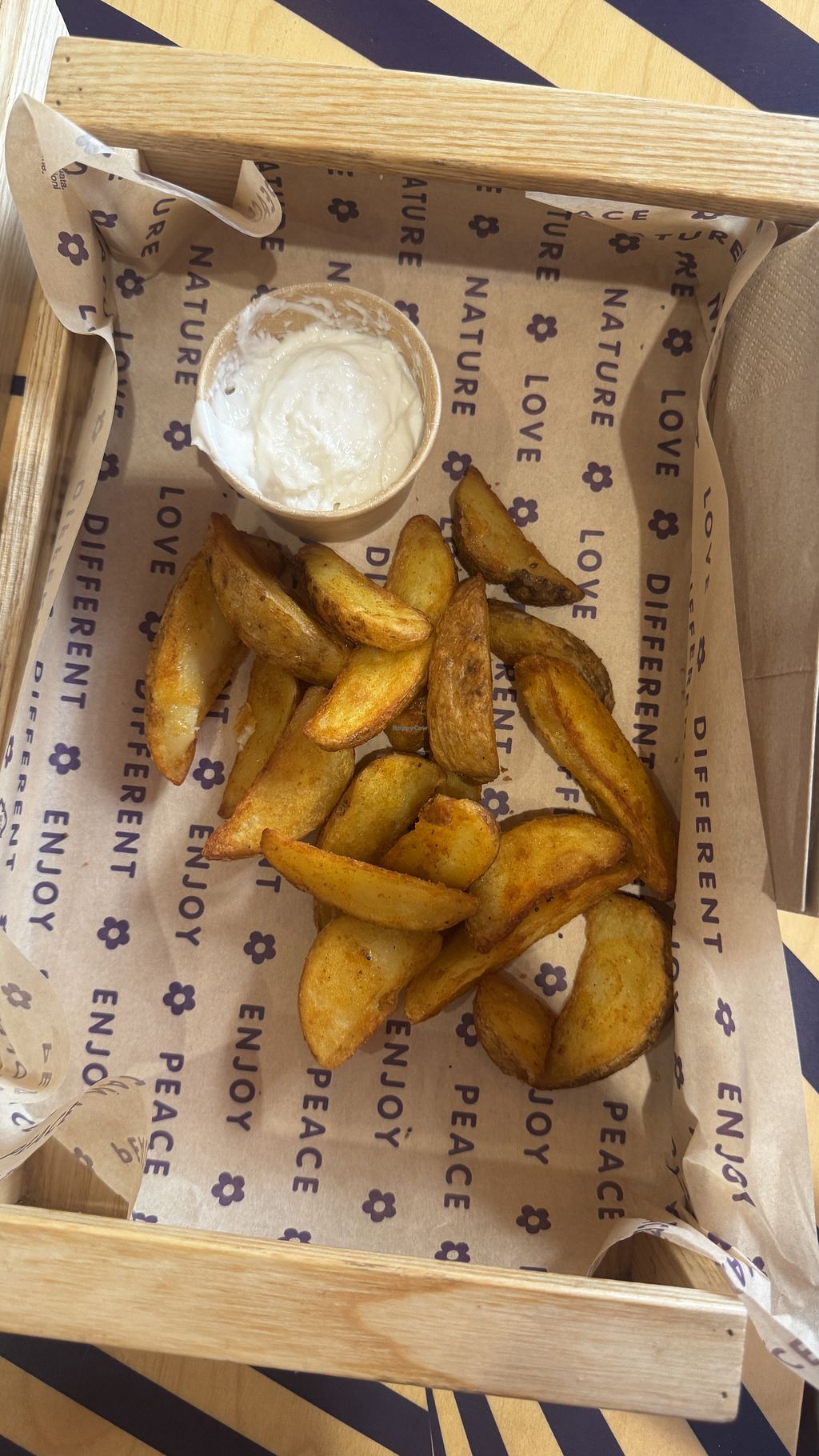 Pros: Very friendly staff, Tasty potato wedges , Nice atmosphere and good location