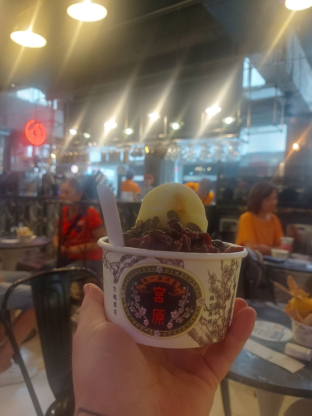A friend who was visiting from out of town wanted to try the famous ice cream made by Dawn Cakes, so I needed to figure out what options I had. The staff didn’t understand when I asked her to tell me which options are vegan; instead, she tried directing me to the cashier end to order. But when I asked her, “Which ones have no egg, dairy, or honey?” She was able to point out the few that are. (See listing description.) The sorbet that sounded most interesting was the one that I got (guava leaves, native pineapple, passion fruit, and apple). Its Chinese name means, “Tomorrow will be even better.” I wish they continued handing out samples so that I could taste it and make an informed decision, but I understand that handling all those used sample spoons is probably not the best idea right now. 😷