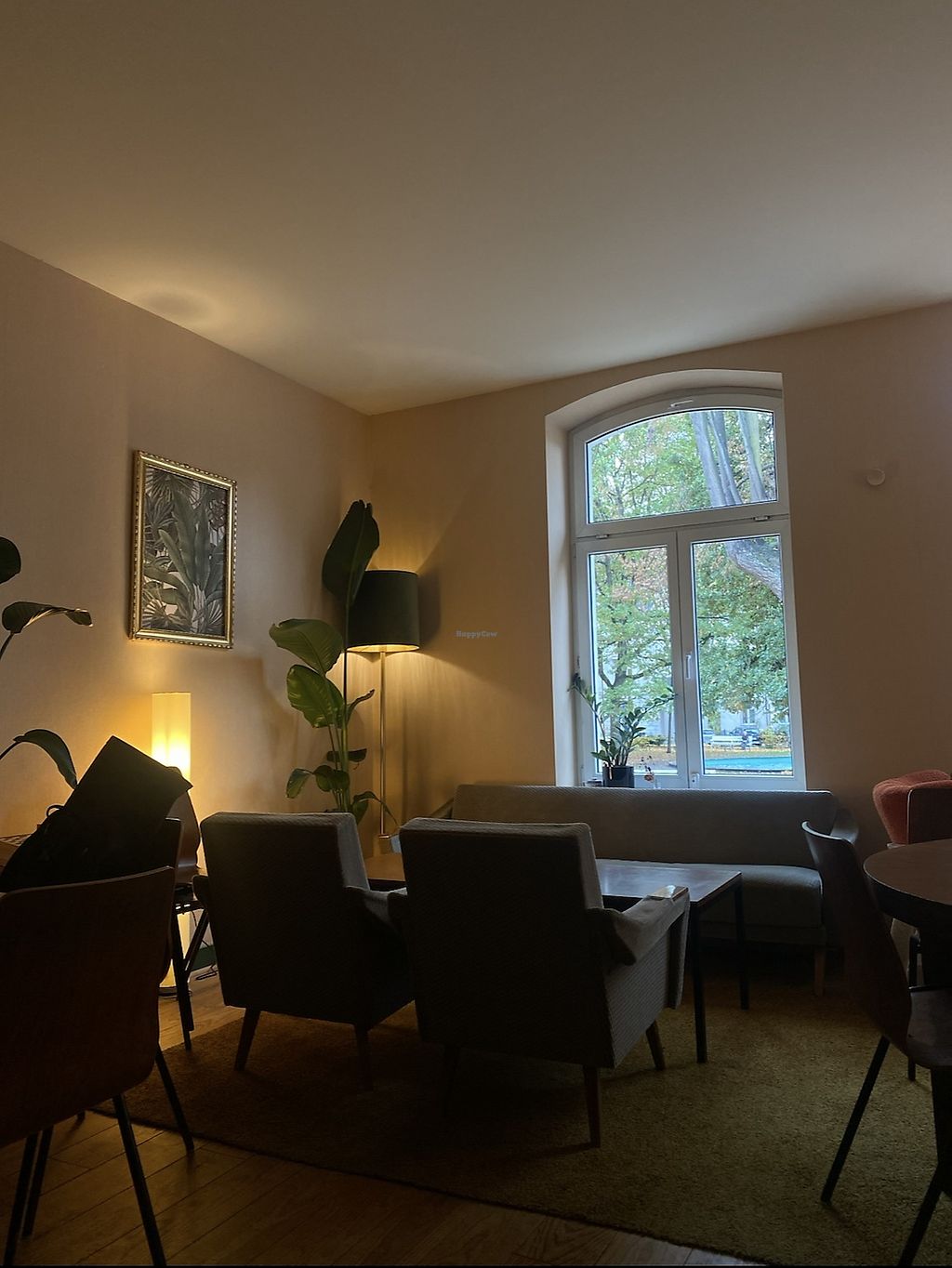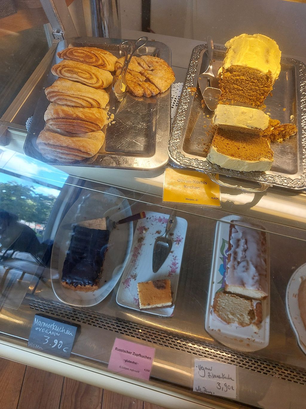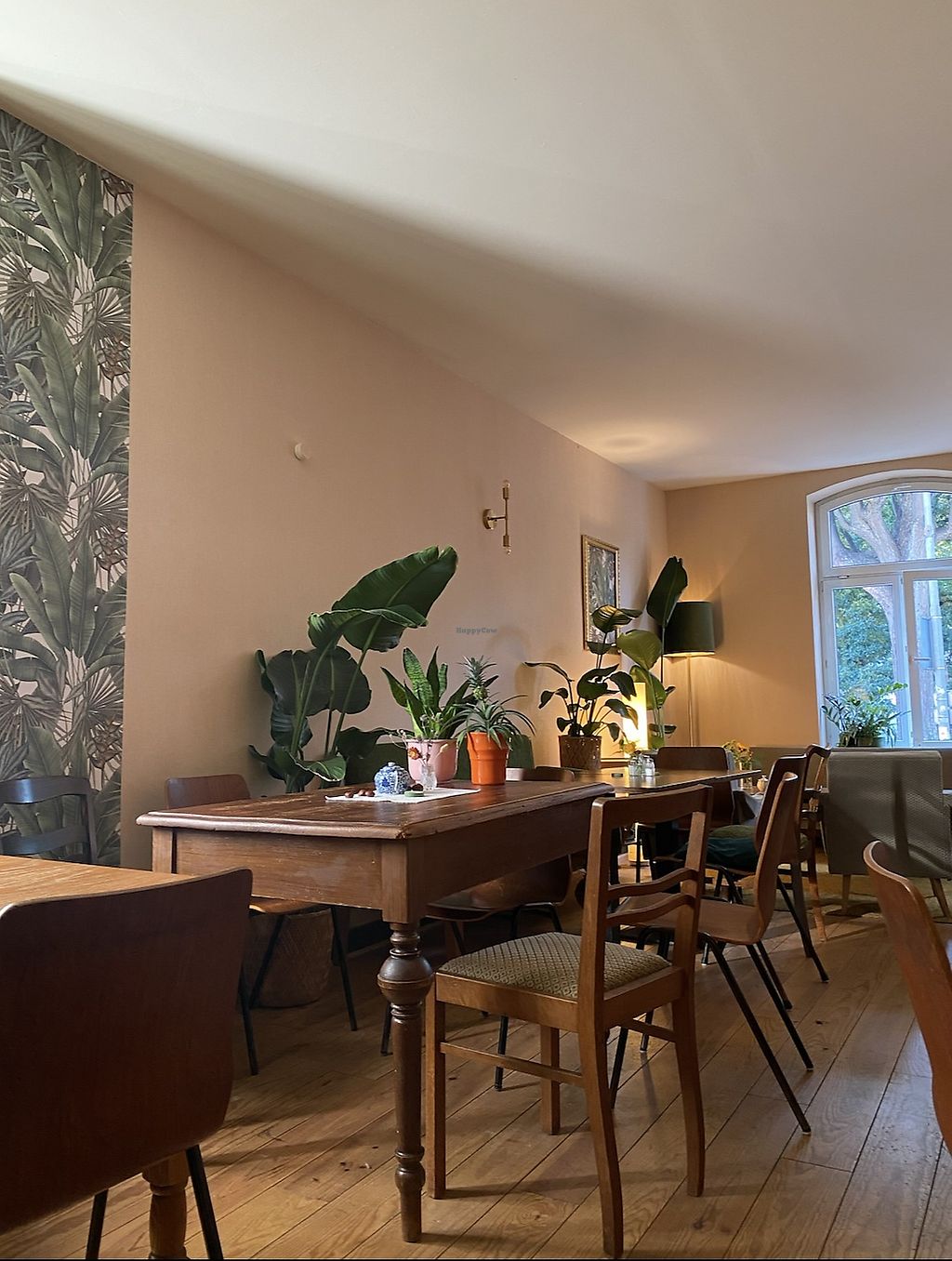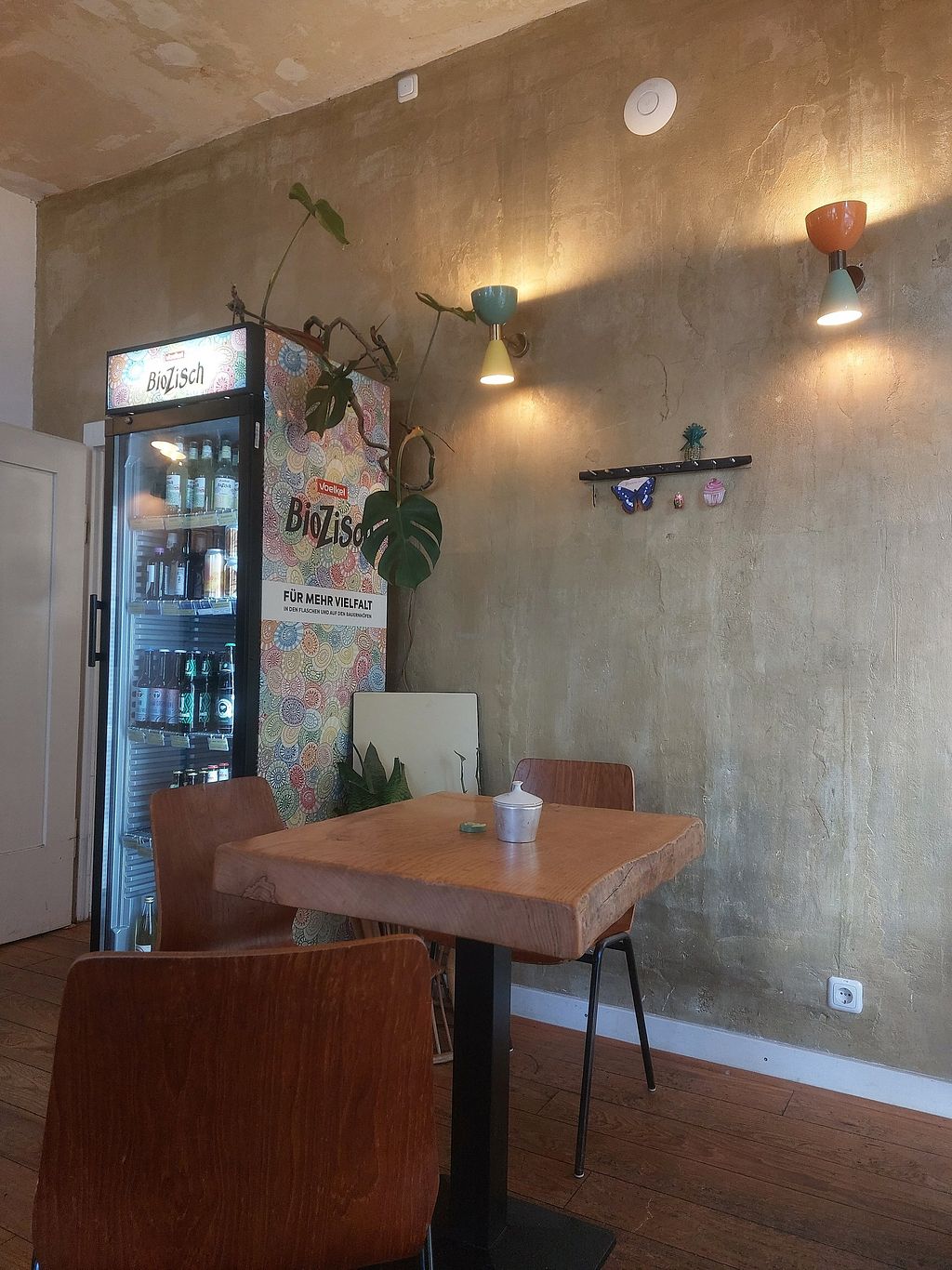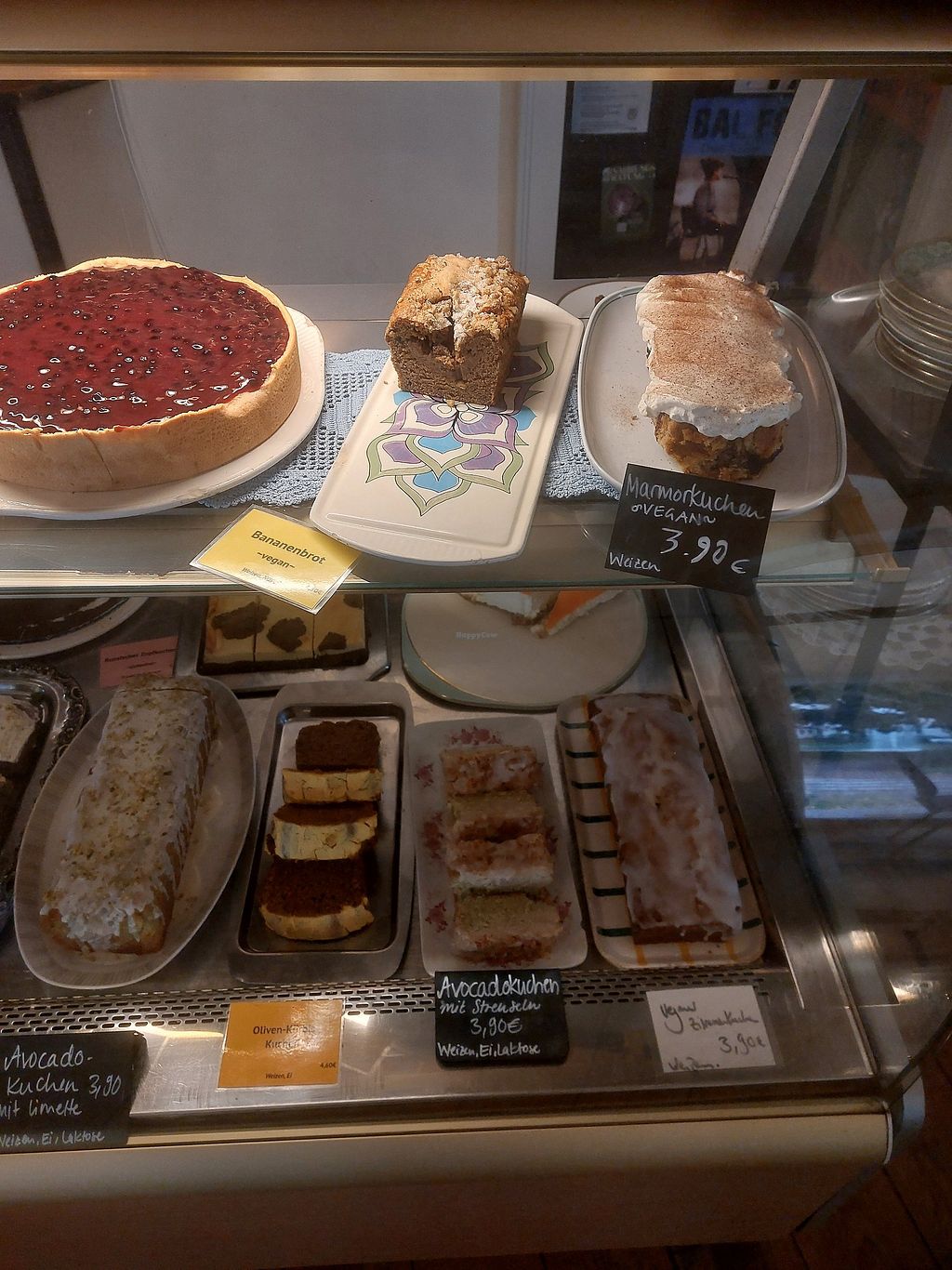 a really cute café a little away from the city center in a pretty, and quiet neighborhood. they had a good vegan selection with vegan cakes, "flammenkuchen" but more like pizza and ice cream. I had the vegan tofu Bahn mi which was so delicious, 100% recommend!