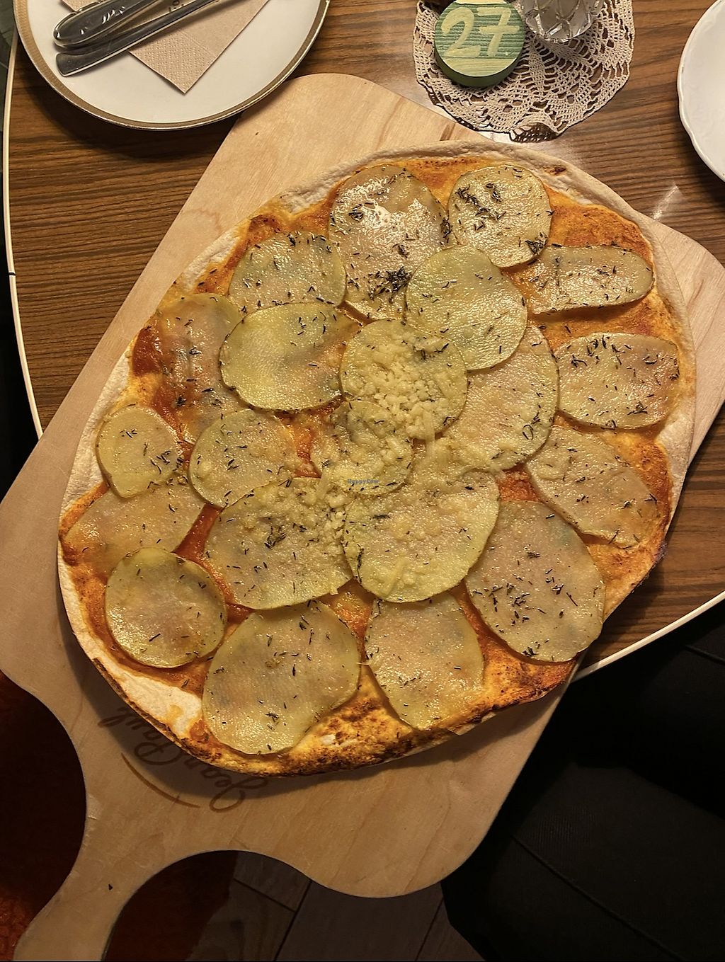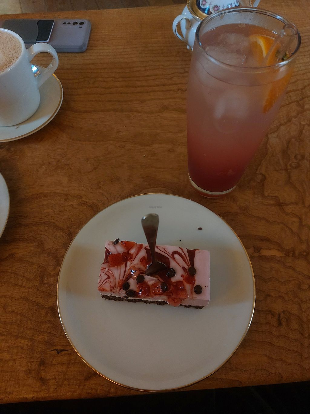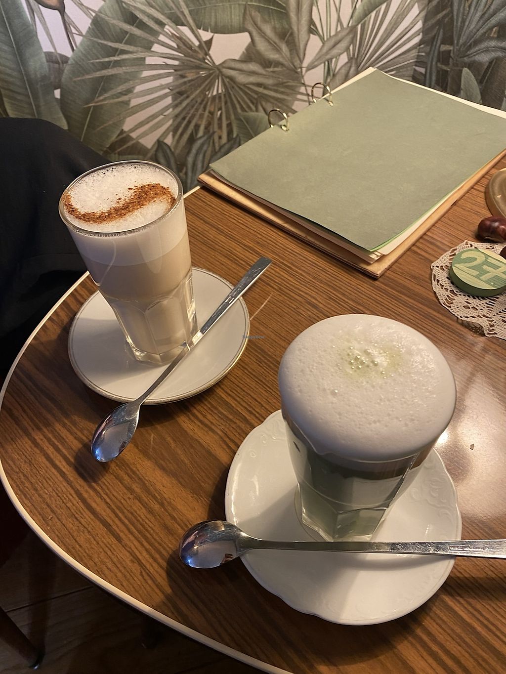 I was warmly recommended this café by a friend and finally got to try it. On our first visit, the selection of vegan cakes was quite small, which really depends on the day and the time. I had a pistachio cake - nothing extraordinary, but still tasty. We also shared a potato Flammkuchen, which was genuinely delicious. Unfortunately, I really didn’t enjoy the matcha latte at all: it was very watery and the matcha quality and amount were clearly lacking.