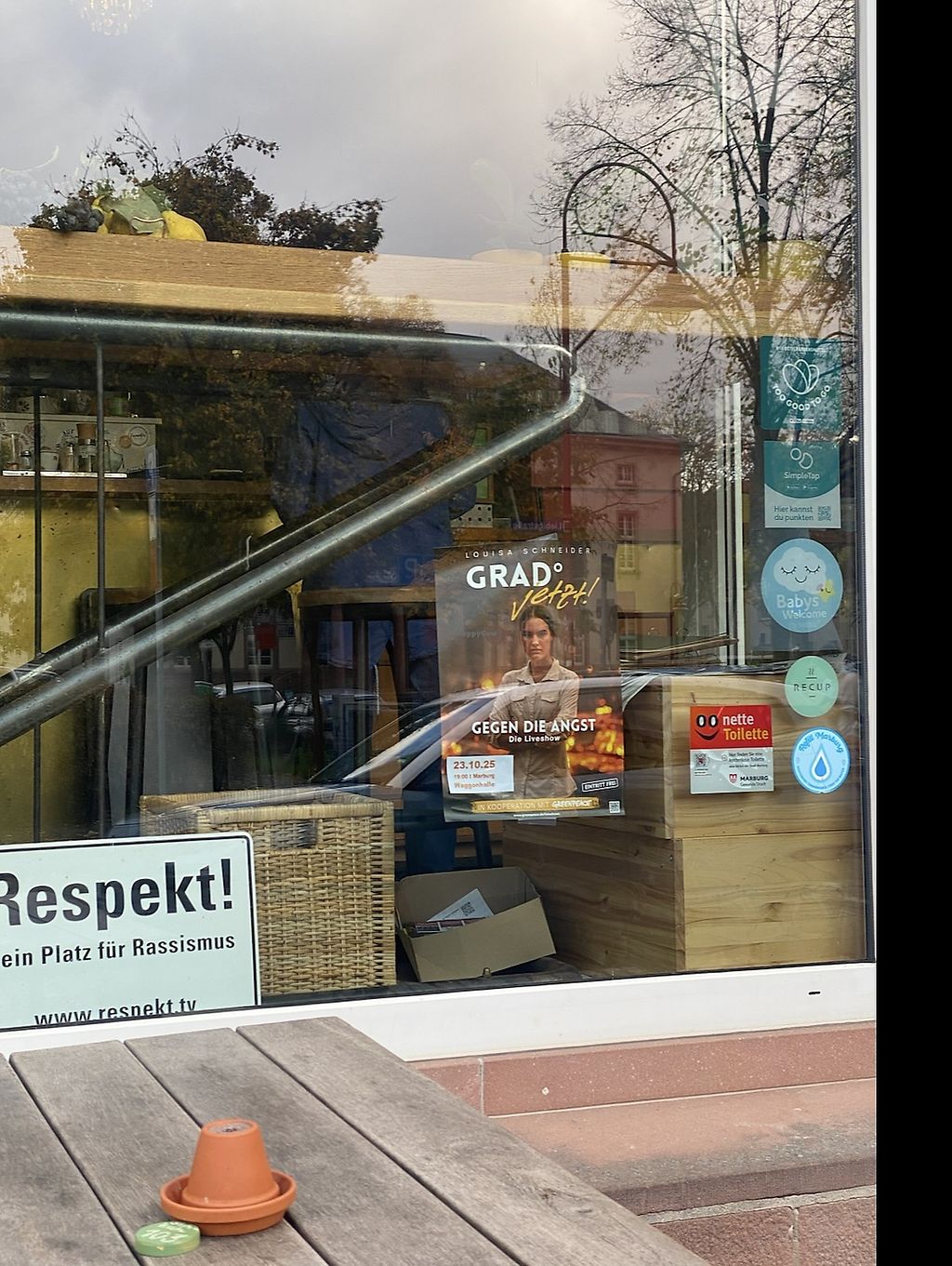 What I especially appreciate is the clear activist spirit: flyers, stickers, and posters in the windows promoting events like Louisa Schneider’s live show. The staff are very friendly, and I’m happy to come back.