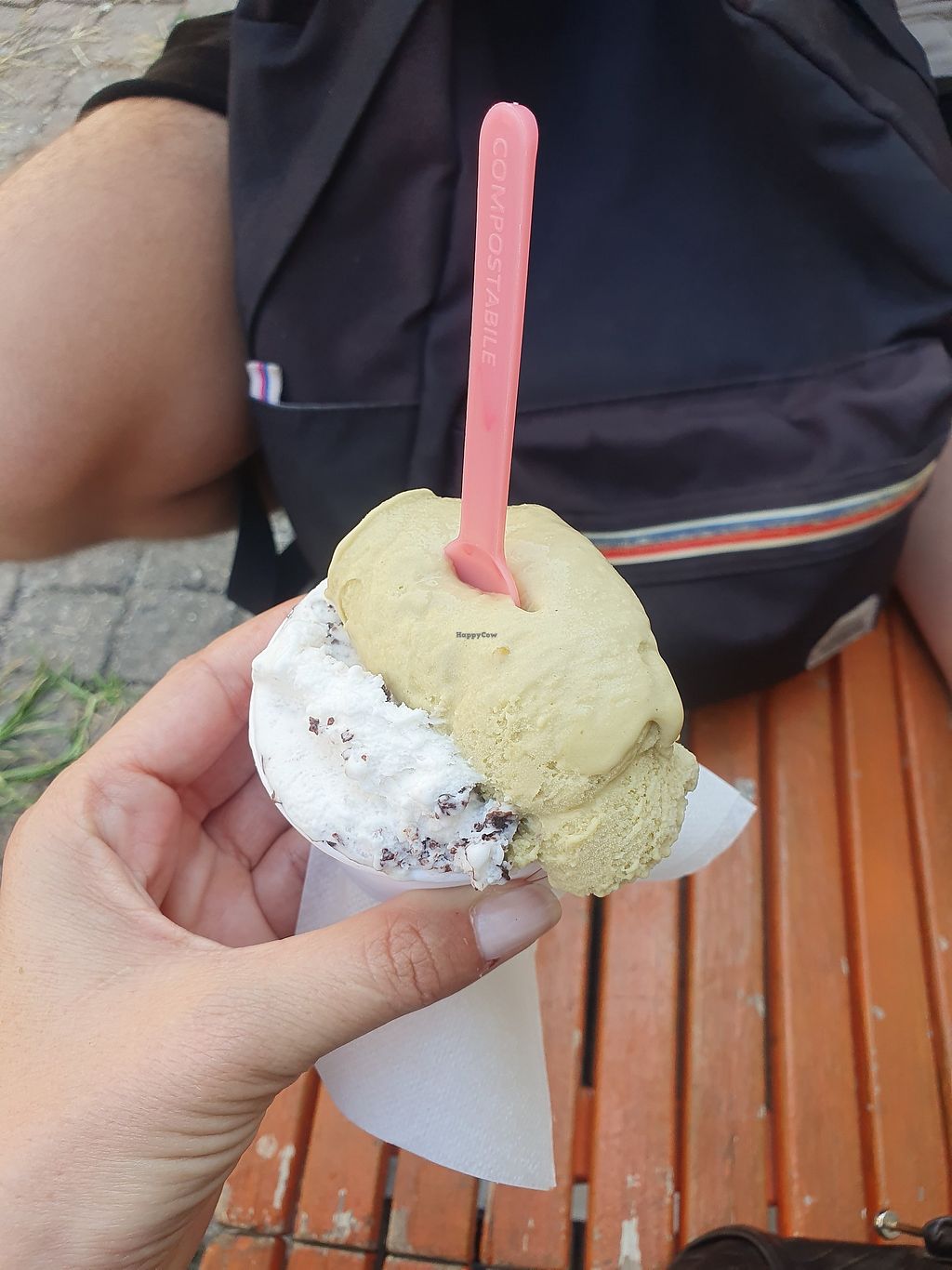 I tried vegan hazelnut and stracciatella and both were very creamy and flavorful. The cone is also vegan! On top of that they also had vegan pistachio, dark chocolate and fruit flavours. Recommended!