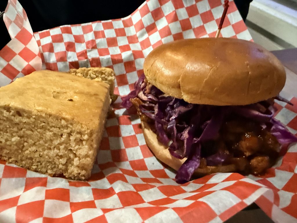 Food was good, came out hot and tasted fresh. Tofu po’ boy had good flavor. If you want to spice it up there is a plethora of great hot sauces to choose from. Bbq soy-curl sandwich also slaps. The guys cooked the food right in front of us and made friendly conversation while we sat at the counter. There is also an option to load hashbrowns with toppings so we will need to come back.