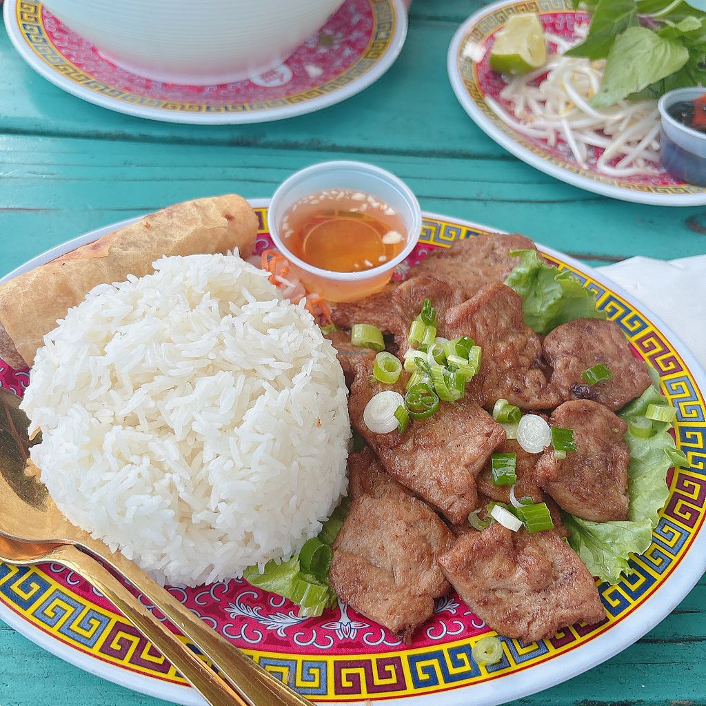 Serves meat, vegan options available. Offers rice plates, rice noodle bowls (vermicelli). Meat can be substituted with house-made mock meat without extra charge. Broth-based soups are served, but the vegan broth is not always available - staff will let you know. Egg rolls are vegan by default with Impossible meat. Cocktails are also available. Open Mon-Sat 11:00am-10:00pm, Sun 11:00am-9:00pm.