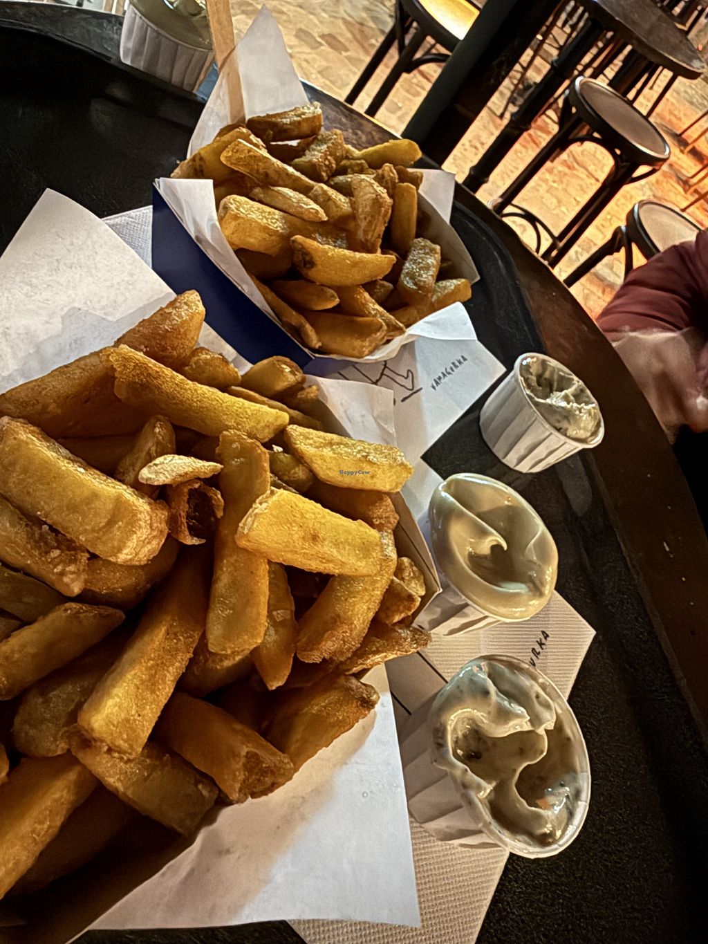 Honestly some of the best fries I’ve had in a while! Like everyone else has said, super crispy on the outside and fluffy on the inside. I do wish they had more vegan sauce options, but for a not fully vegan establishment, the two we have are great! Ketchup is really nice and the pickle sauce is fun, bright, and sharp - a perfect snack as you’re exploring Brussels😄