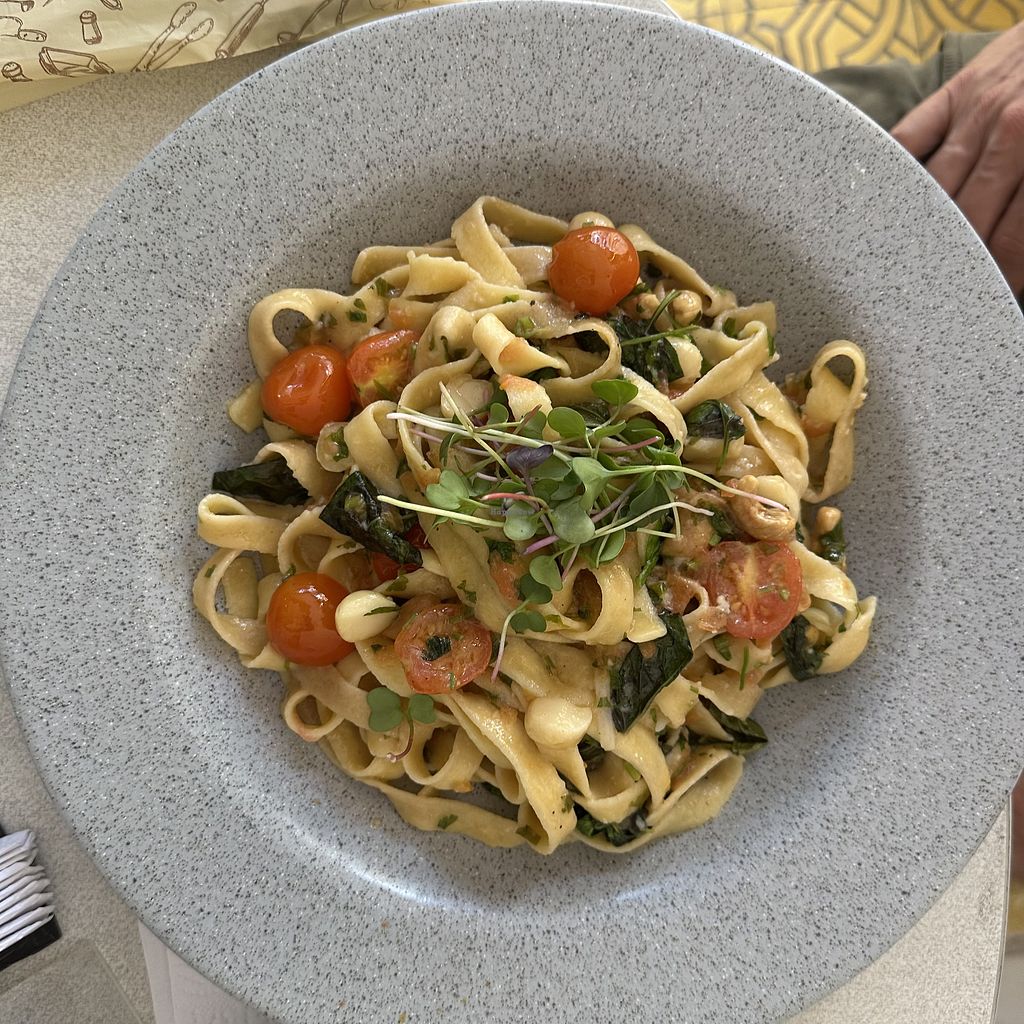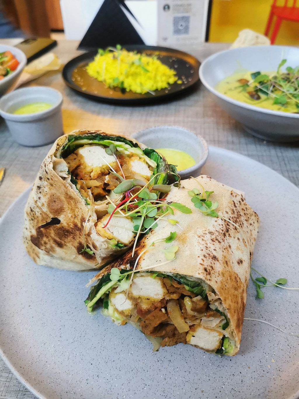 Had a burger and a pizza. Both were good. Pizza a bit small. Expensive for what you get, but they claim that veggies are organic so makes up for the price. Vegetarian restaurant but indicated as vegan on happy cow. Has many vegan options though. Very friendly staff.
