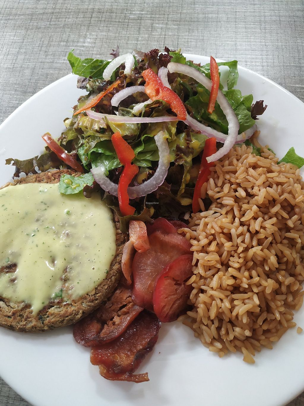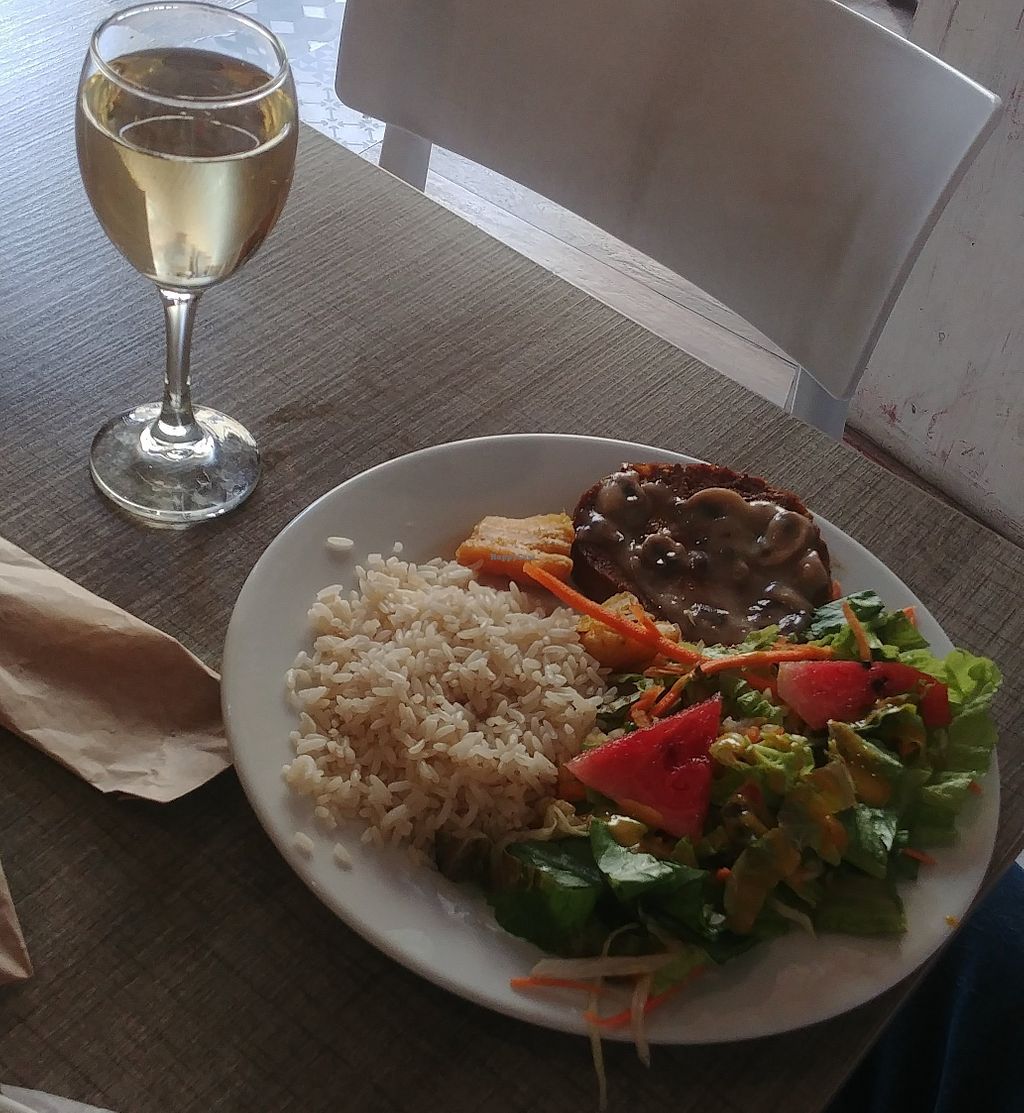 We ate the menu of the day which was entirely vegan. The protein was a bean patty with avocado sauce which I really loved, it was very tasty.