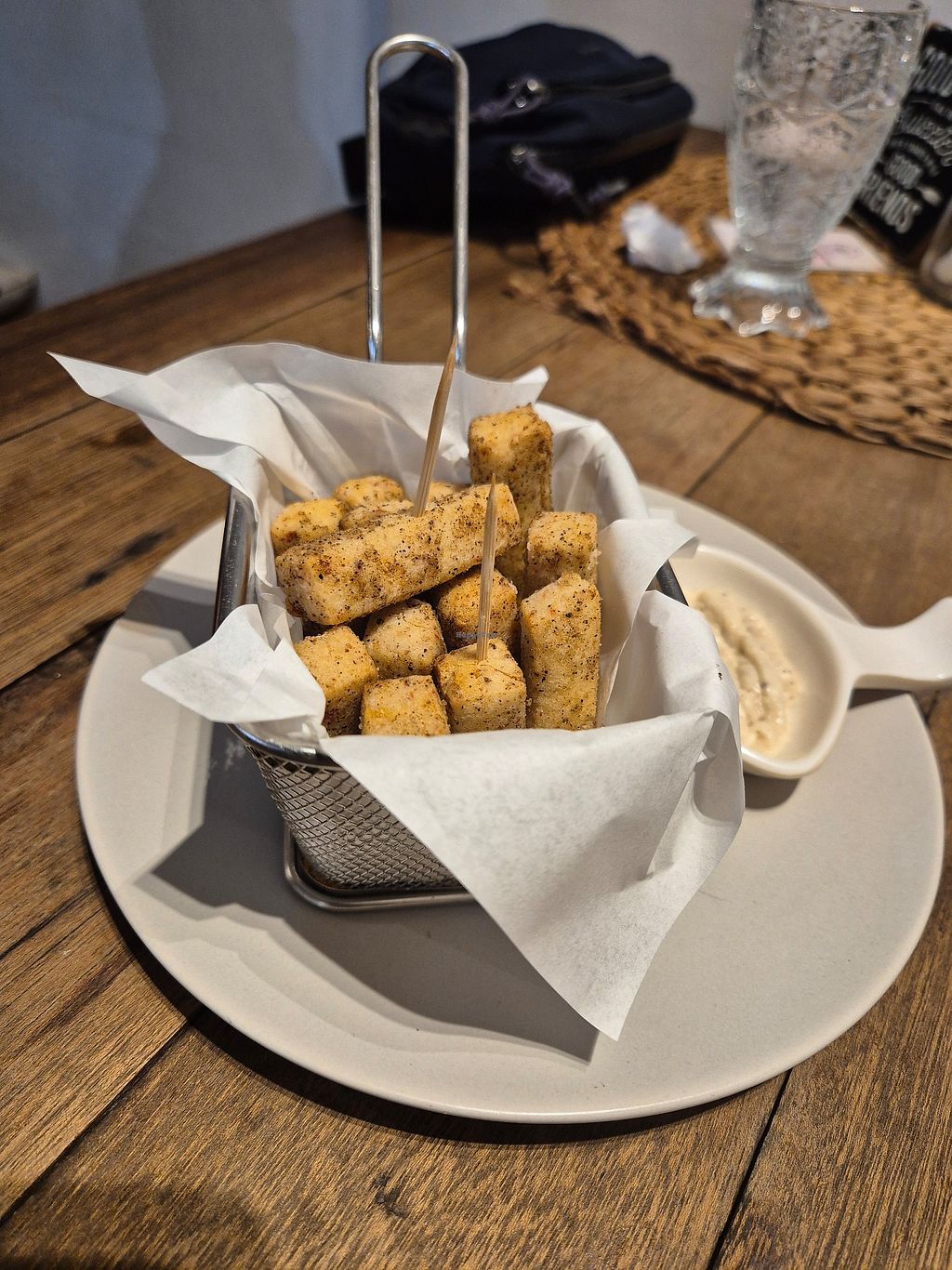 Tofu sticks are super tasty! Had the meditaranean pasta too which was a bit disappointing. Pasta was undercooked and the sauce was a bit watery and lackluster.
