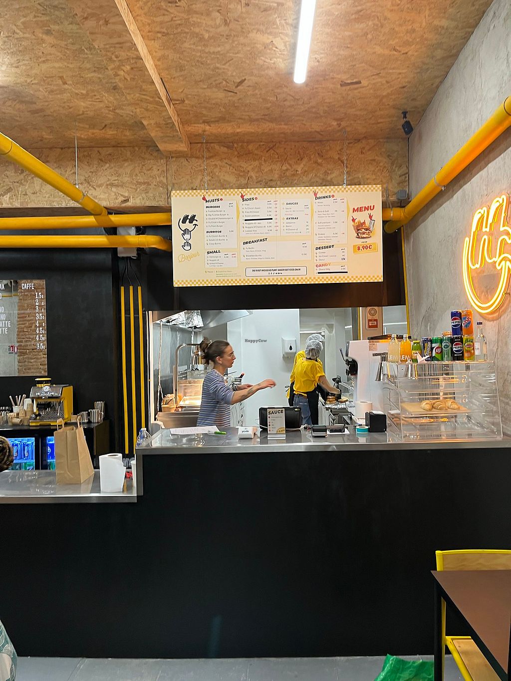 Fully vegan fast food restaurant hiring exclusively deaf people. Offers burgers, kebabs, burritos, cookies, and drinks. This is the second location after the Paris address.