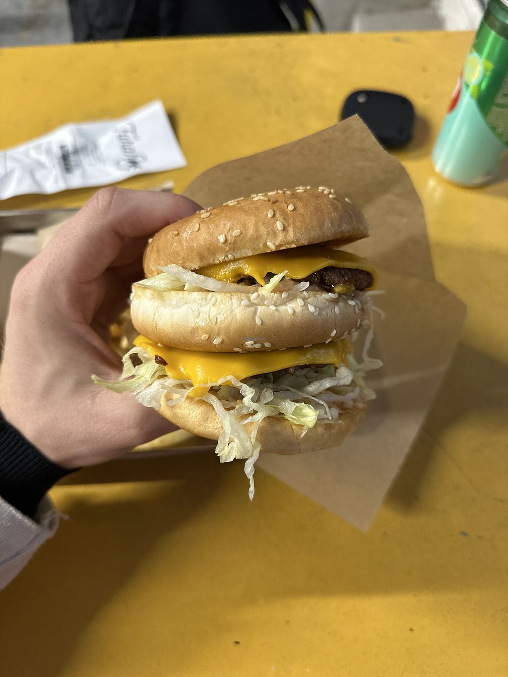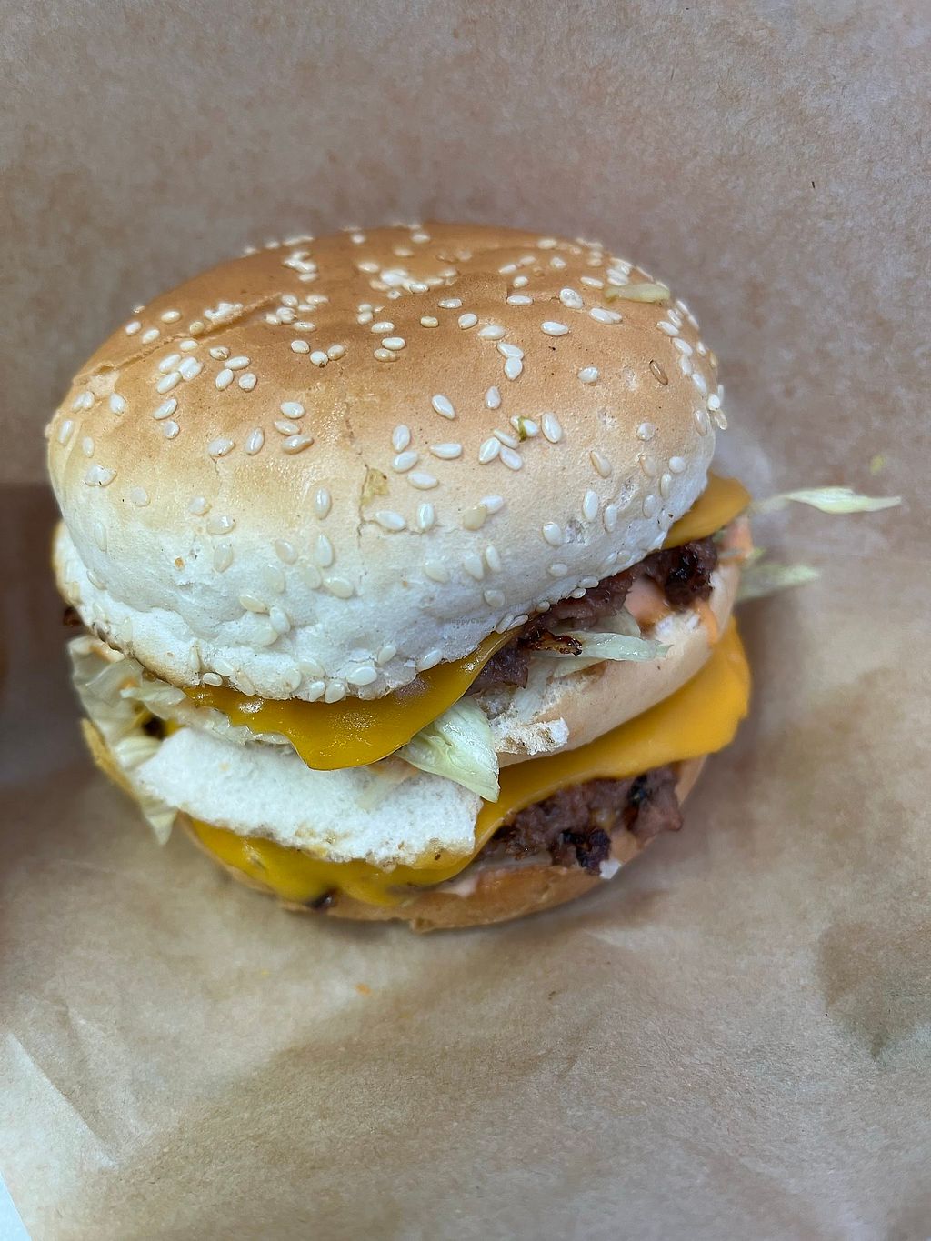 I had a chicken burger and sweet potato fries, my boyfriend had what looked (and tasted like) a big mac.. both absolutely delicious! Would recommend if needing good junk food