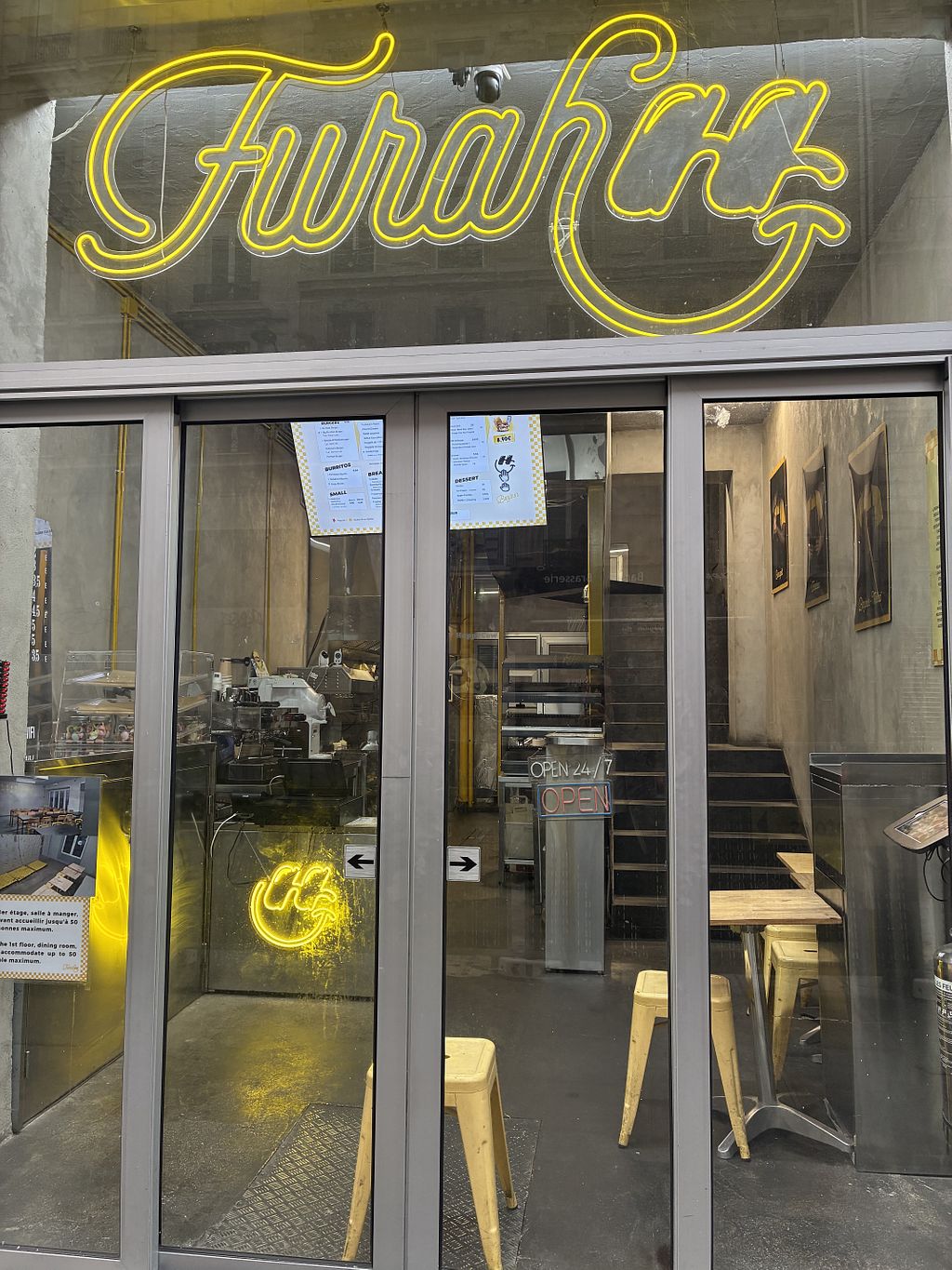Vegan take-out shop & delivery launched in 2020 by the team behind Furahaa Candy & Furahaa Break. Features a concise menu of burgers, burritos, bowls, fries, candies, shakes and drinks. Upper floor seats 50 and playland escalade for children under 8 years. Order at the counter or use the tablet provided. Centrally located near Chatelet les Halles. Open Mon-Sun 00:00-00:00. Open 24/7