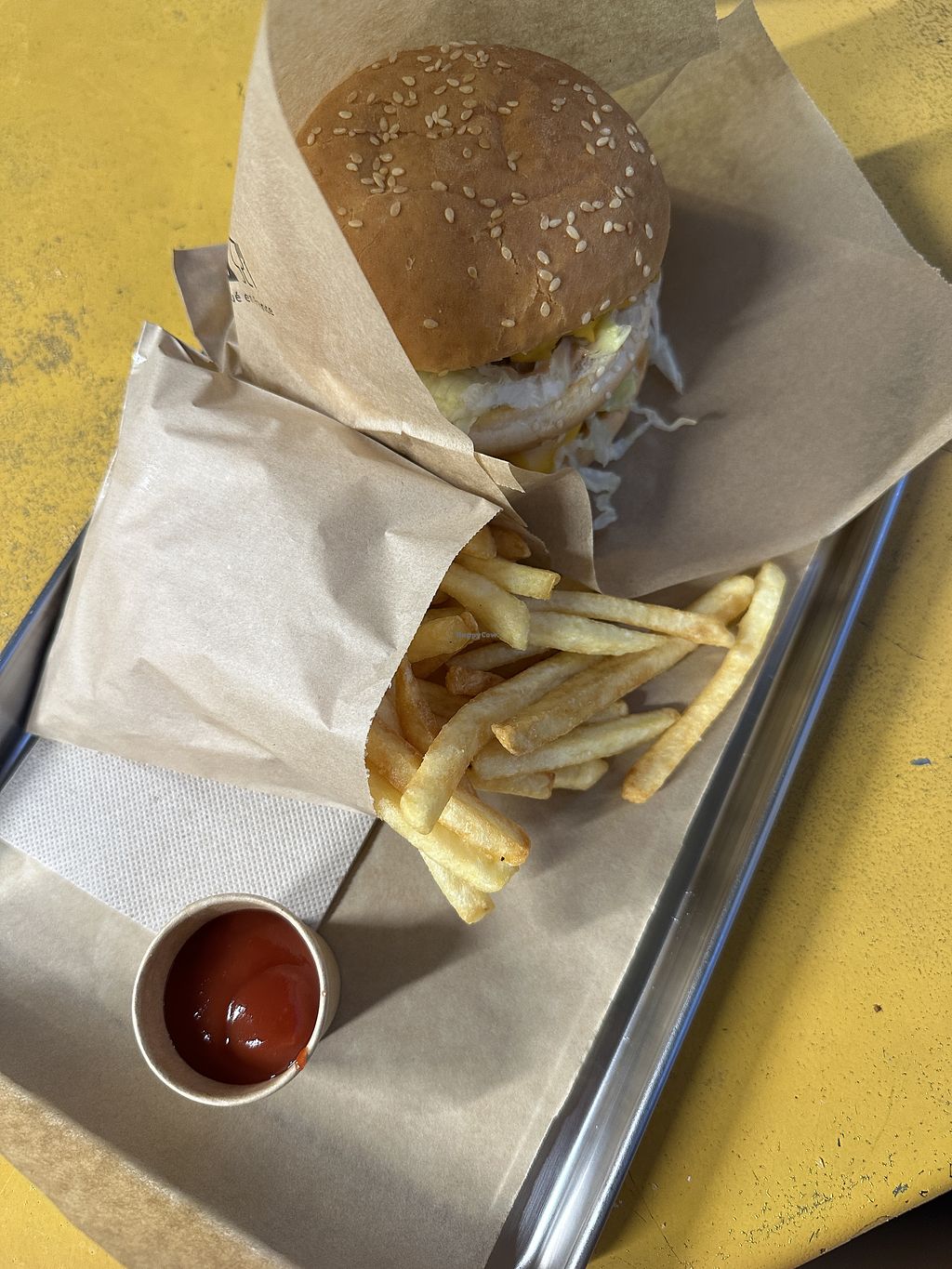 I ordered the chicken burger with cheese fries. Both were so, so good😍I'm really picky with burgers and I LOVED this one. I wish I had the time to come back and try a shake.