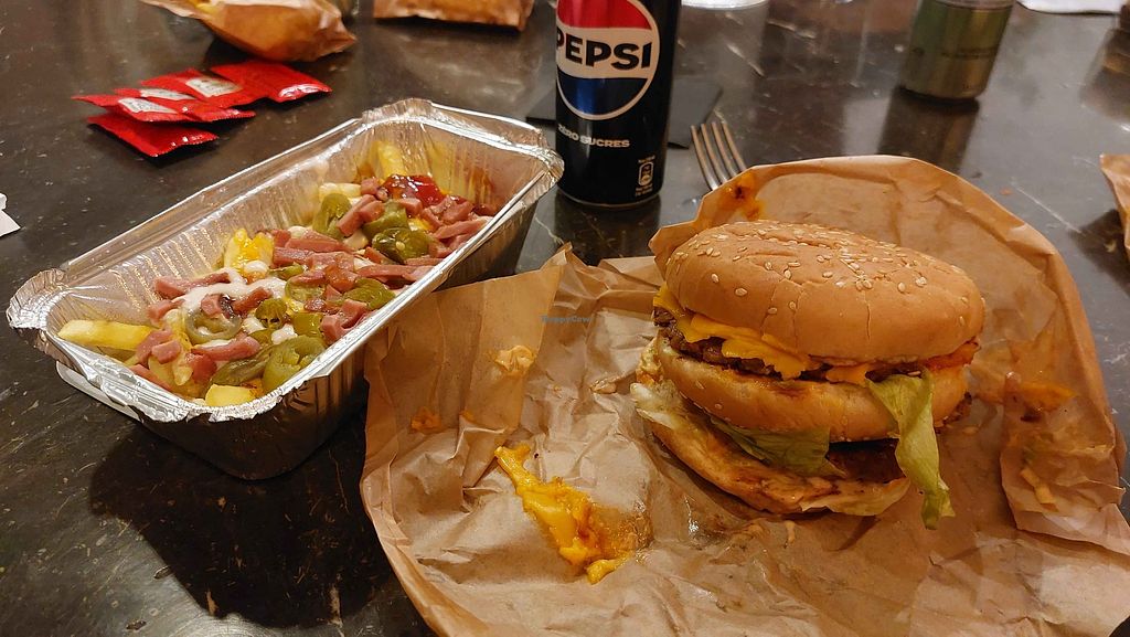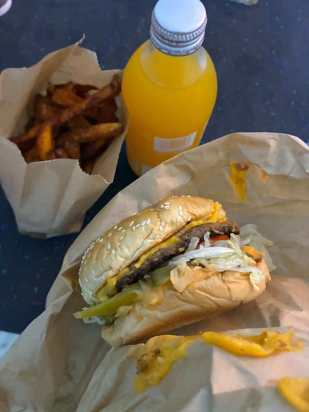 Furahaa burger with sweet potato fries and passion fruit lemonade