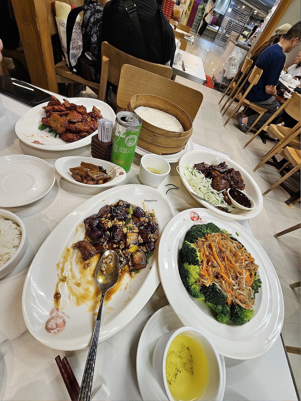 Read moreThe food was pretty darned good. I was in the mood for something slightly greasy after a day of running around. I had a nice veggie plate with beef rolls dinner, and a non-alcoholic beer here. I grew out of mock meats quite a while ago, but the fake beef rolls were pretty tasty and just the right level of greasy and salty to satisfy my craving. The meal was served with a nice bowl of grape tomatoes (kind of fun to eat with chopsticks), and the main dish was very generously sized. At a little over $8US for the main dish and $3US for the beer, it was quite reasonably priced -- cheaper than I expected given that it is in an upscale shopping mall.