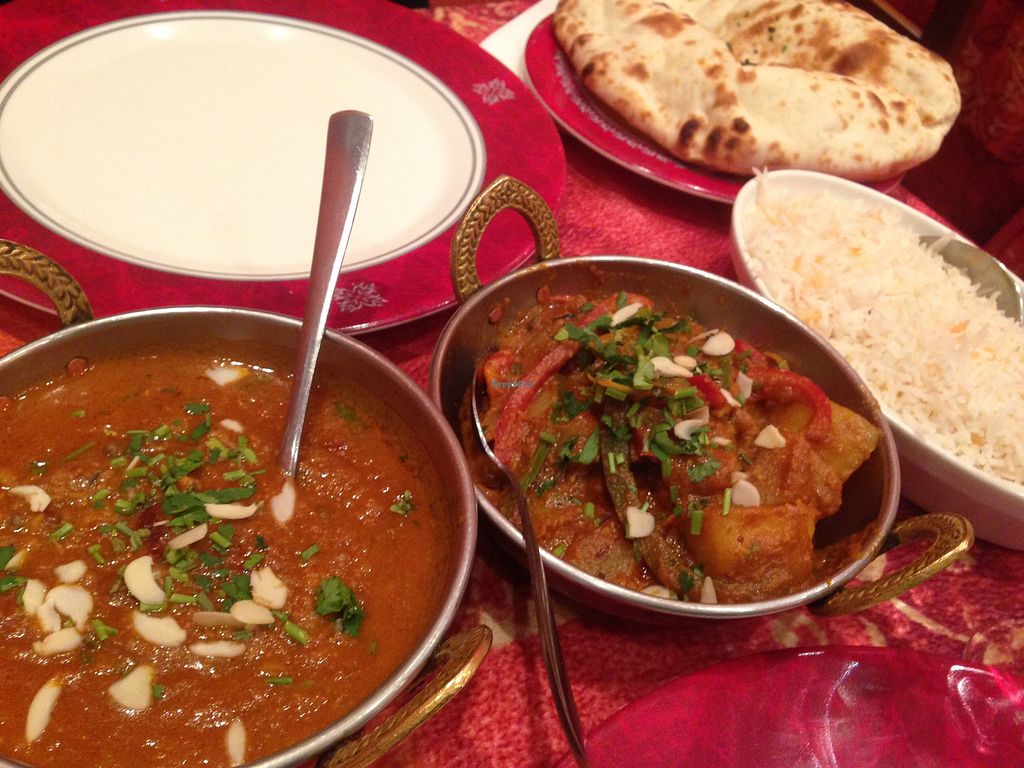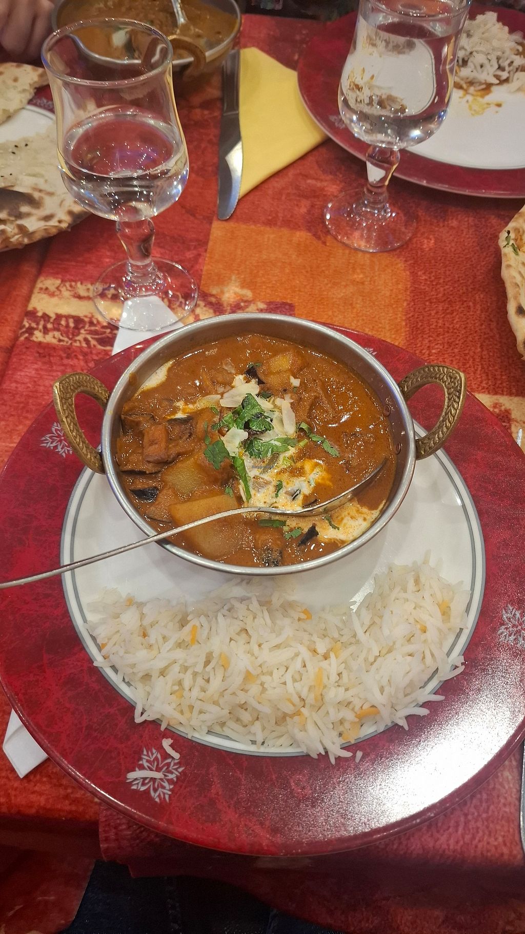 Serves meat, vegan options available. Indian restaurant with some vegetarian dishes like samosas, dal, aloo gobi, pubajbi bharta, kofta, bhendi masalad, and mushroom bhaji. Has vegetarian curries which can be made vegan on request. Open Mon-Sun 18:30-23:00, Tue-Fri 12:00-14:00, Sun 12:00-14:00.