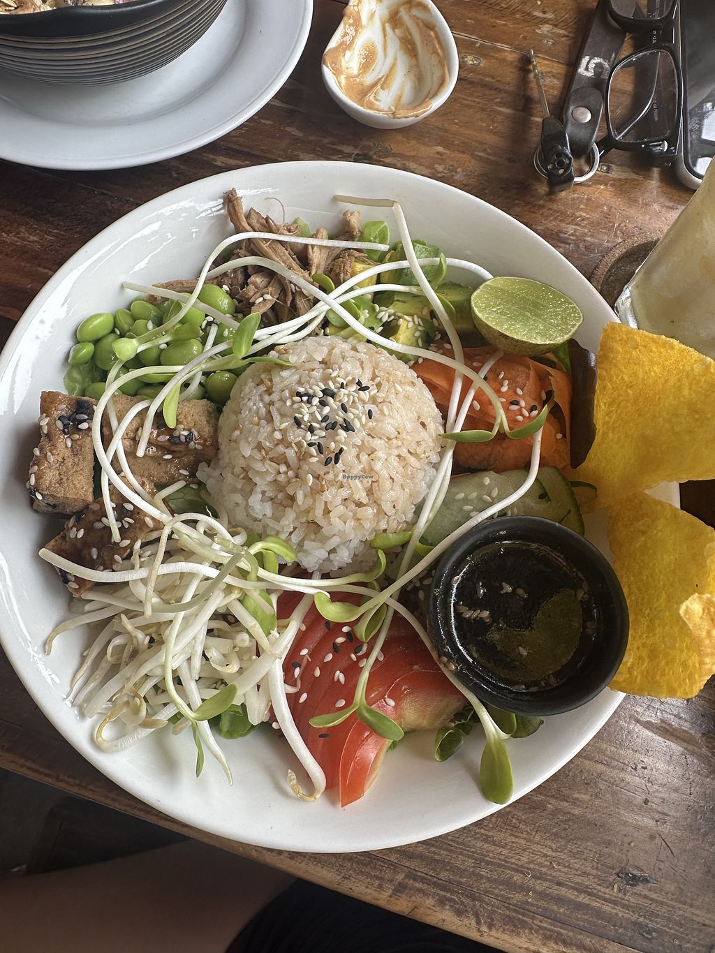 Really cute place with loads of options. Went twice and got ‘chicken’ and it was really good. Lovely staff.