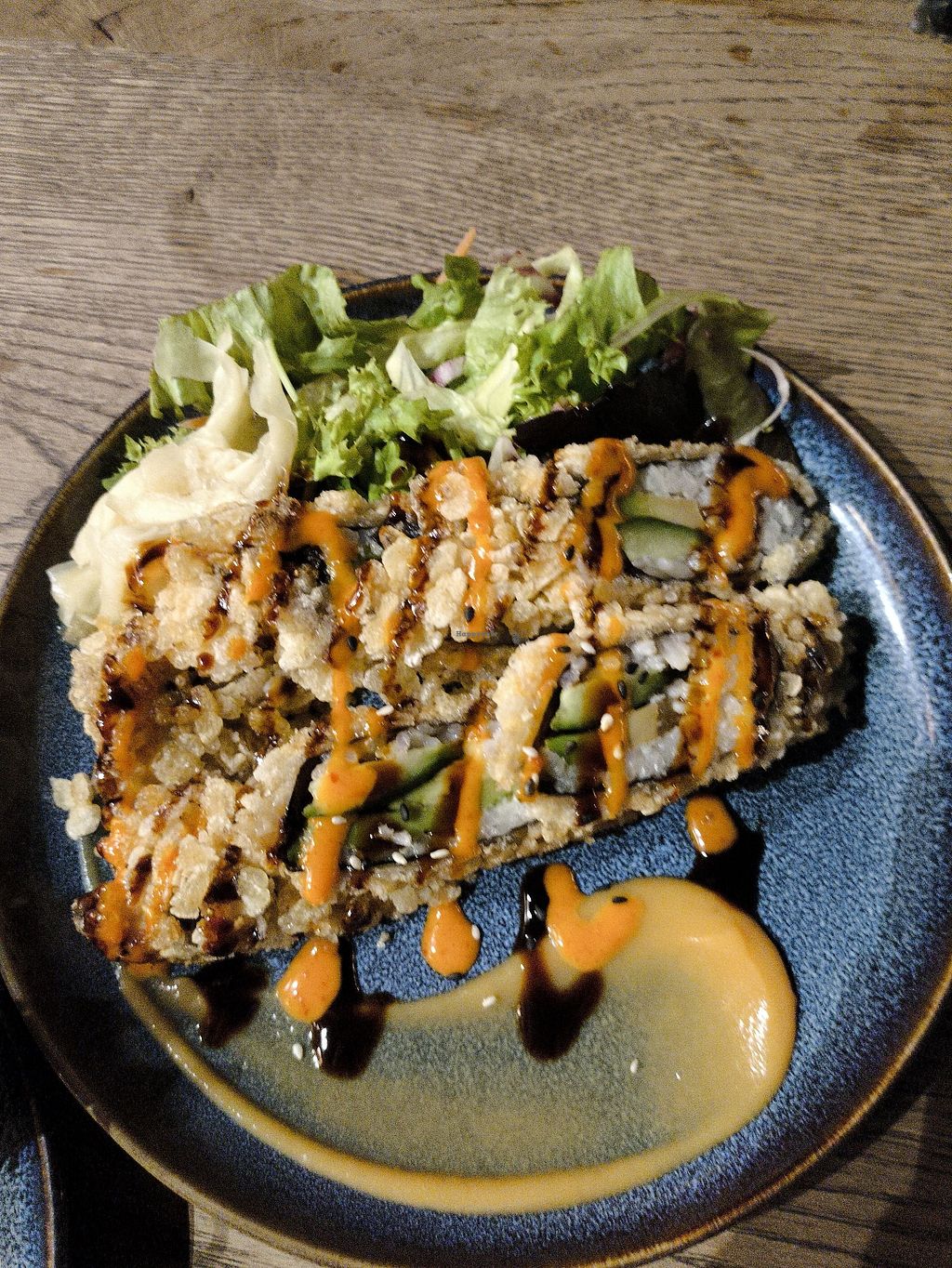 Ik kon niet kiezen dus stelde de ober voor om iets typisch Vietnamees te kiezen. Ik heb een gevulde rijstbal gegeten en gevulde gebakken tofu met salade erbij. Het was overheerlijk. Ik heb nog nooit zoiets geproefd. Zeer vriendelijk ook en niet duur.