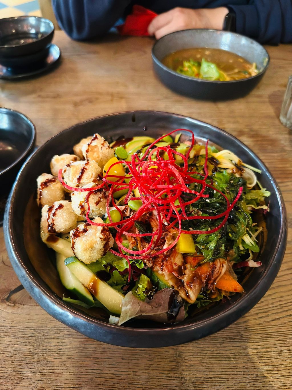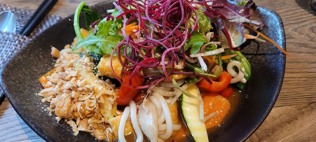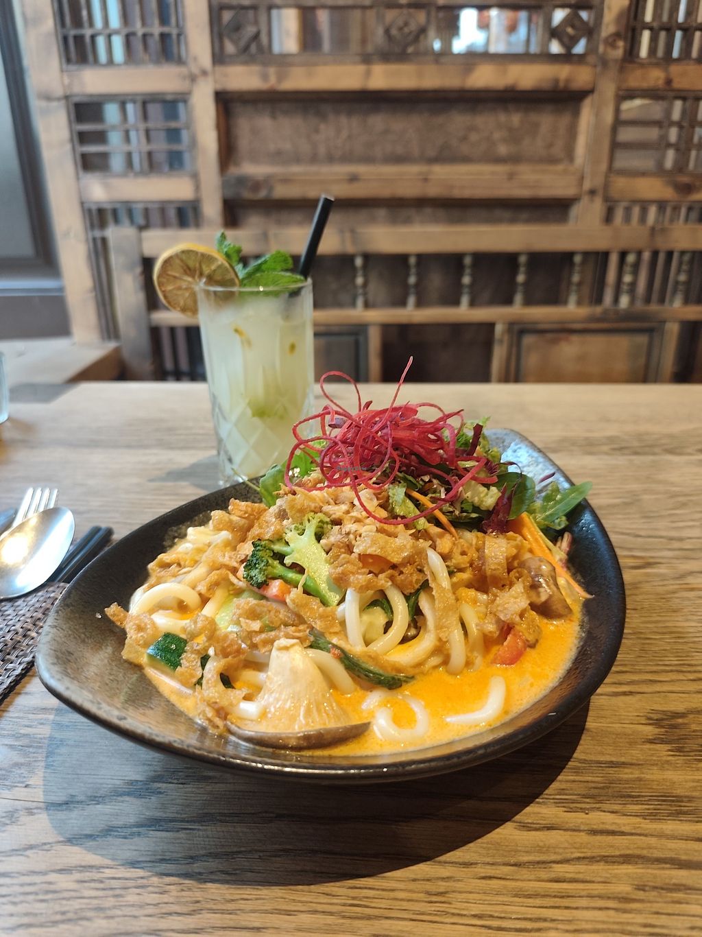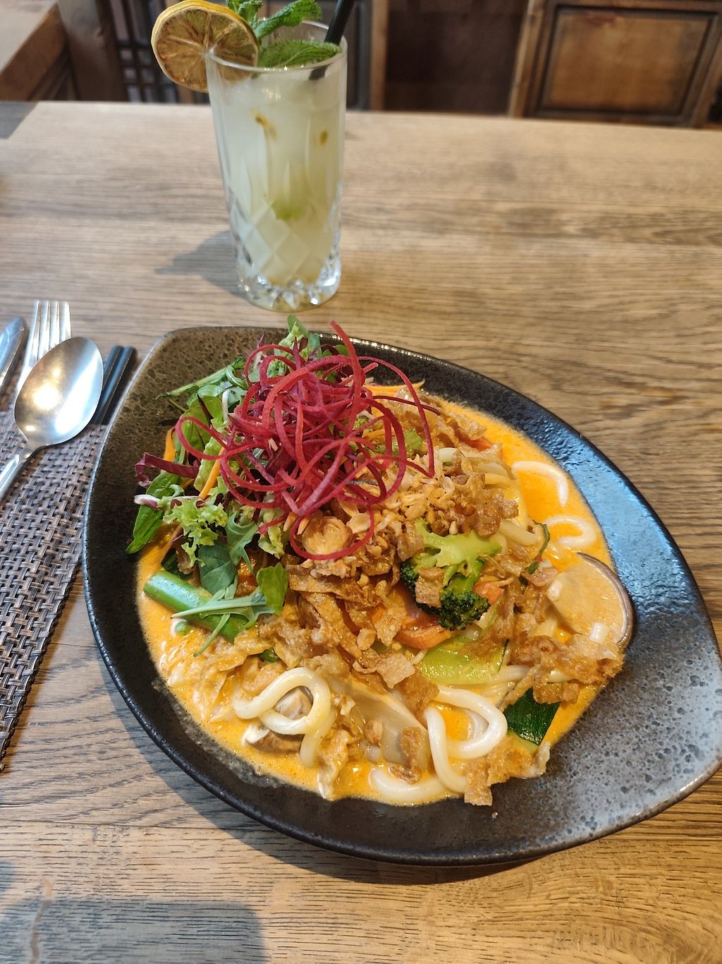 I ordered a udon coconut milk soup with seitan and it was absolutely fantastic. The lemongrass-coconut base, fresh veggies, perfecty cooked mushrooms and chunky noodles were topped with crispy seitan strips. Each bite was a burst of flavours and textures.