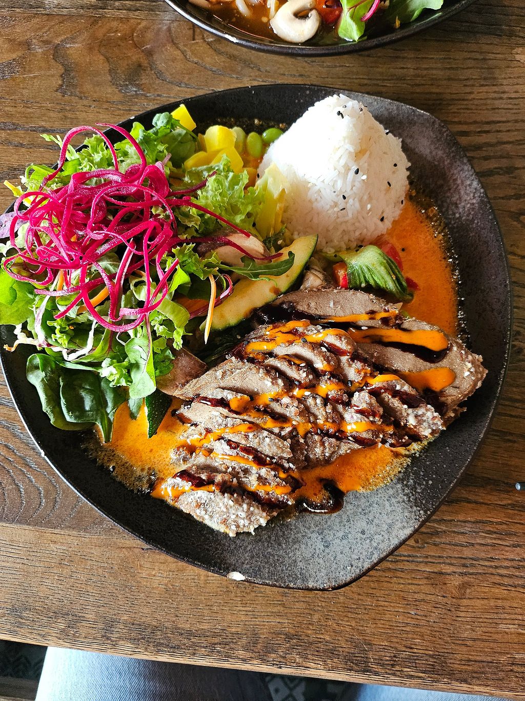 Main dish, it was larger than it looks in the picture. Enough for 2 me…