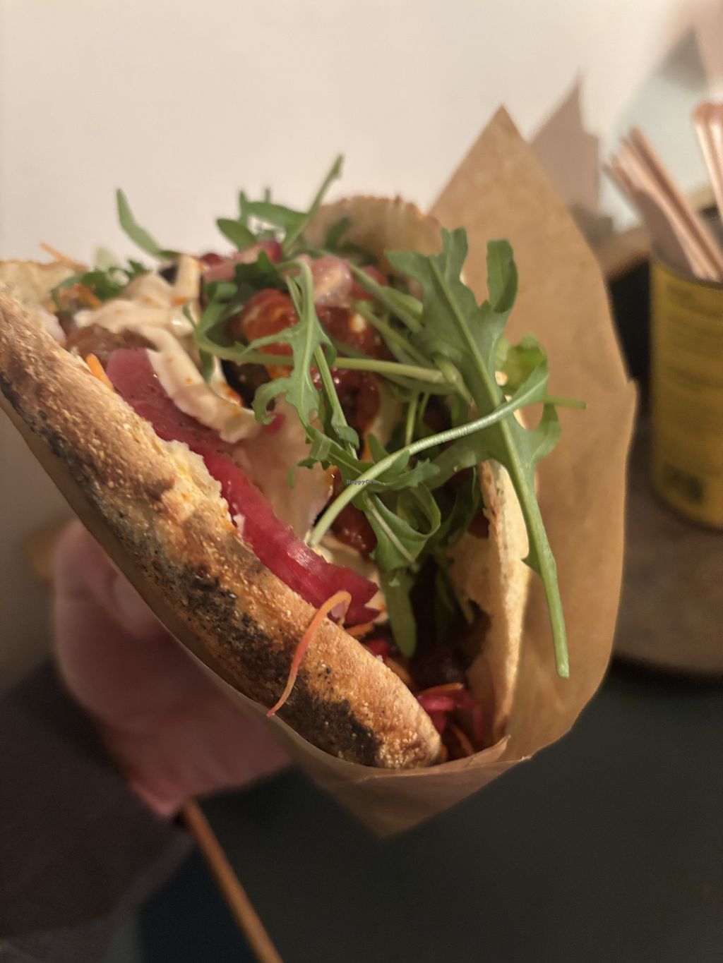 Really tasty pita! They have one vegan option (falafel with tahini dressing) either as a bowl or pita bread plenty of sides. Tasty and decent portion size. Friendly service and nice vibe. Not much seating though, better for takeaway imho.😄