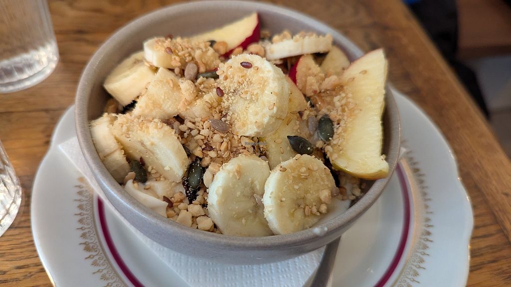 So the only vegan breakfast they offer is granola and if you are lucky some pastries. In our case a cookie and an apple crumble.