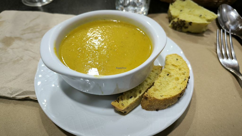 Restaurante vegetariano con opciones vegan y/o platos vegan. Restaurante con comida típica de un vegetariano. Nada especial y todo bastante sencillo y para mí mejorable. Pido una ensalada, una crema de calabaza, potaje de alubias y natillas. Nada a destacar, la verdad, lo más rico la crema. Si le quieres dar una oportunidad y estás por la zona dale, aunque creo que hay mejores opciones.