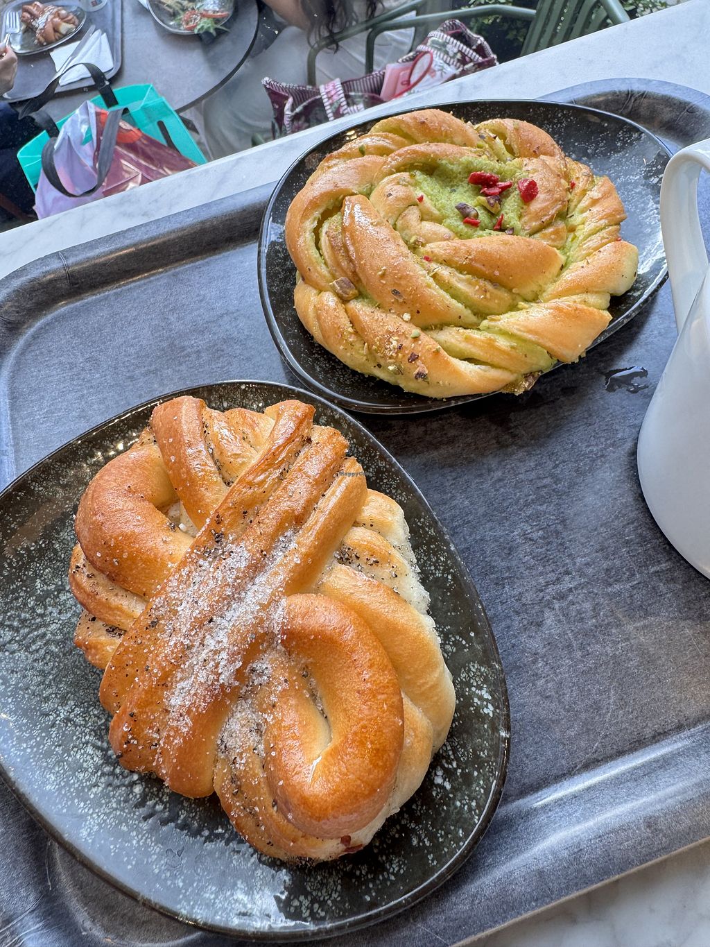 They had 2 vegan options including saffron pastry and cardamom pastry. I had the saffron one and it was Devine. Husband had a different one. We both had almond milk flat white coffees and they were delicious and smooth with good strength coffee. Cute seating area upstairs too with great views.