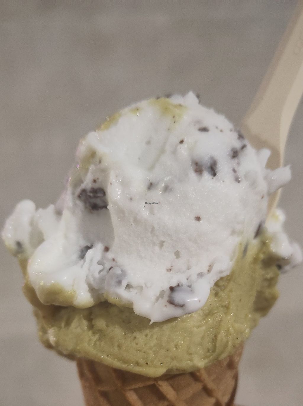 La carte de ce glacier est très claire : les glaces sont très bien classées selon qu'il y ait du lait ou pas. Ils ont plusieurs choix vegan vraiment bons. J'ai goûté la stracciatella al cocco et la pistache et c'était délicieux. Le cône est également vegan 😊