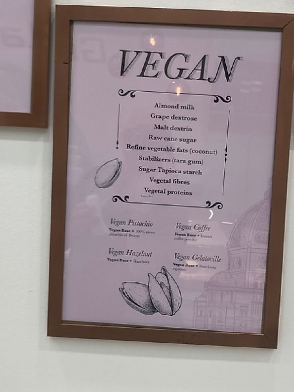 Gelateria offering a variety of vegan flavors including pistachio, chocolate, mango, strawberry, coconut and more. Open Mon-Sat 7:00am-12:00am, Sun 8:00am-12:00am.