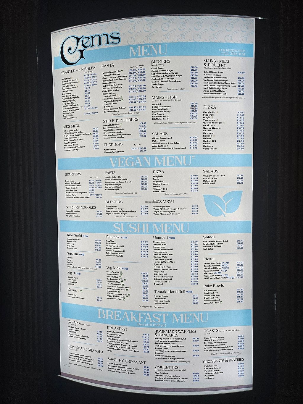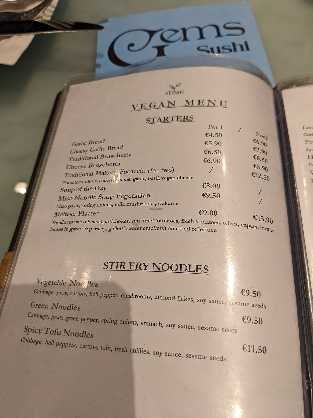 Gems have a vegan menu, loads of choices and the food was great. I the vegan lasagna and it was delicious.