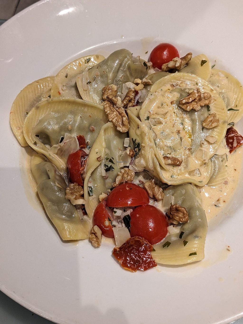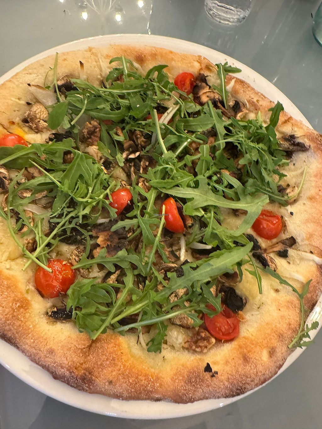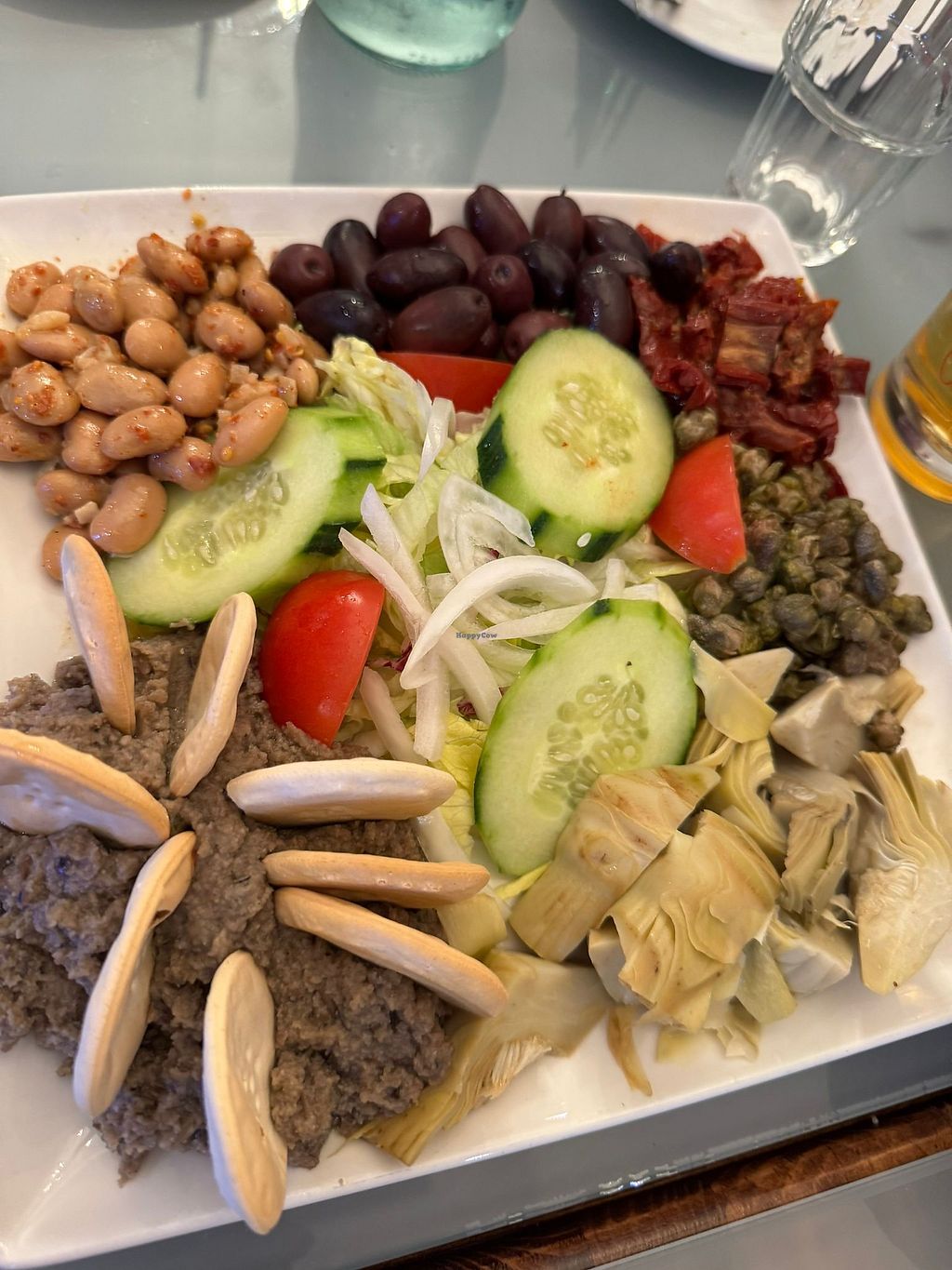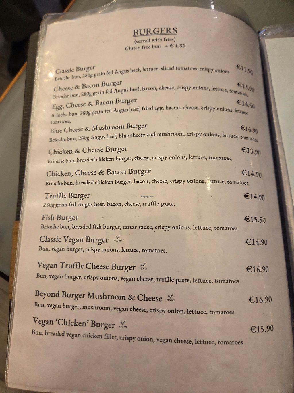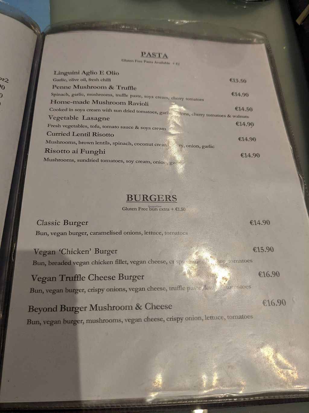 Lots of vegan options as photos show. My partner and I shared the vegan platter for starters, amazing, and I had a pizza and he had the ravioli. Both brilliant and washed down with vegan beer!
