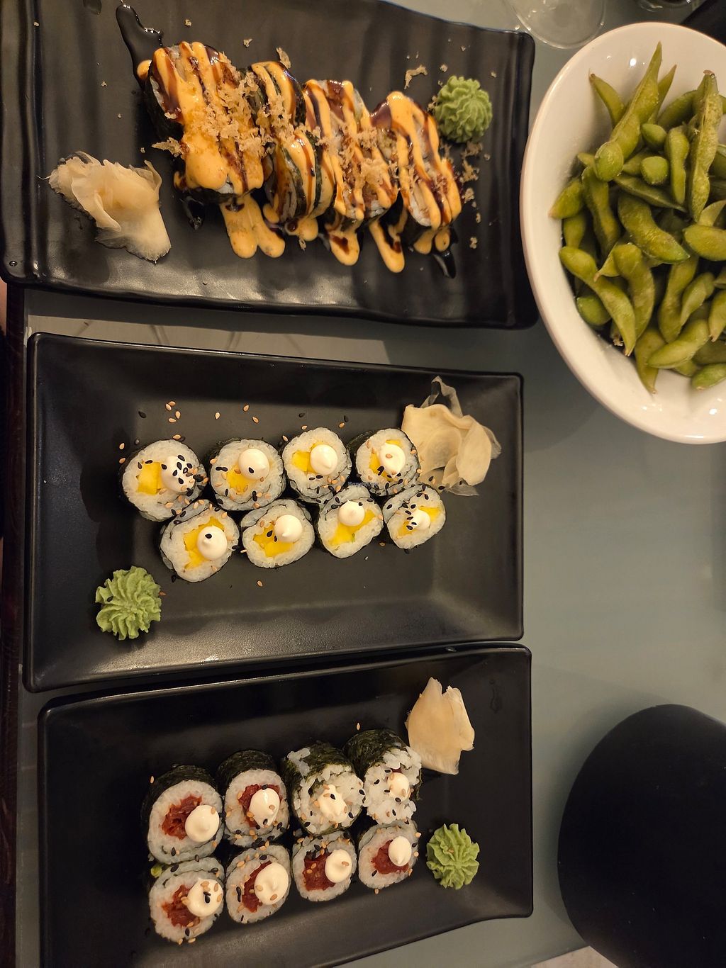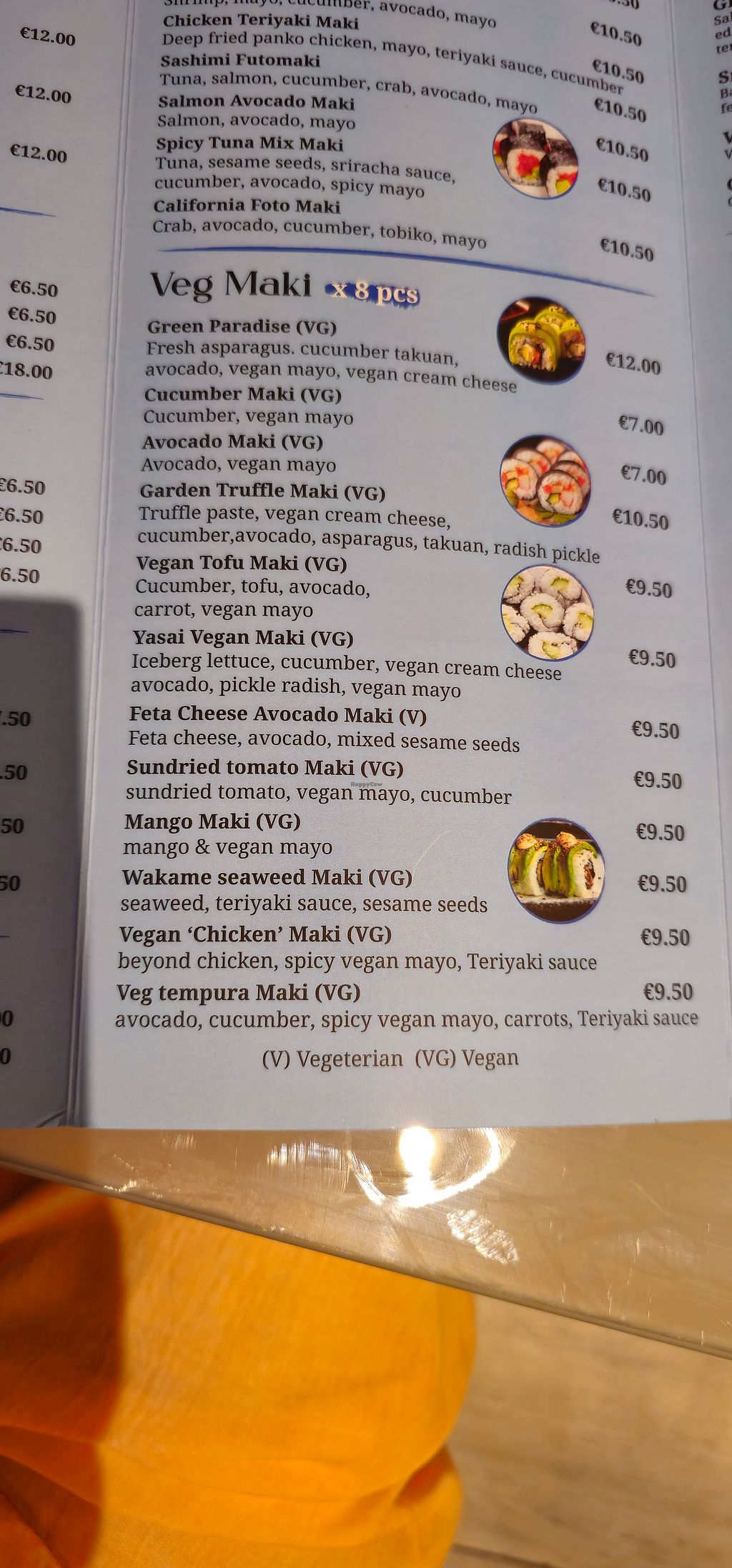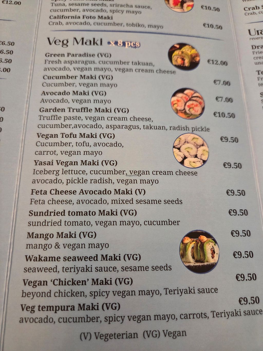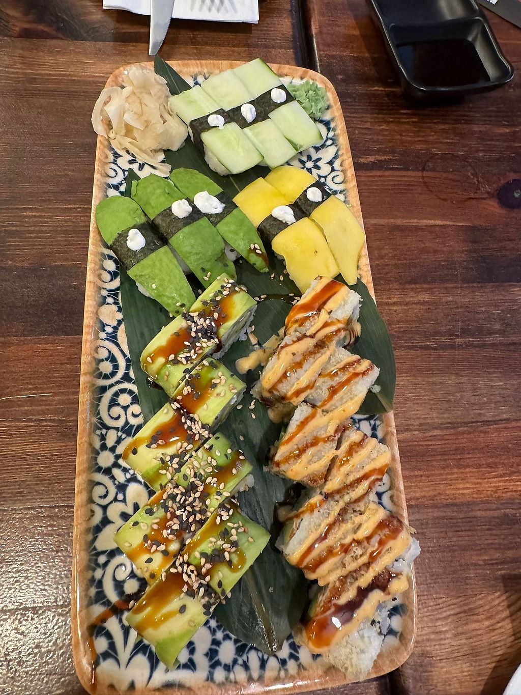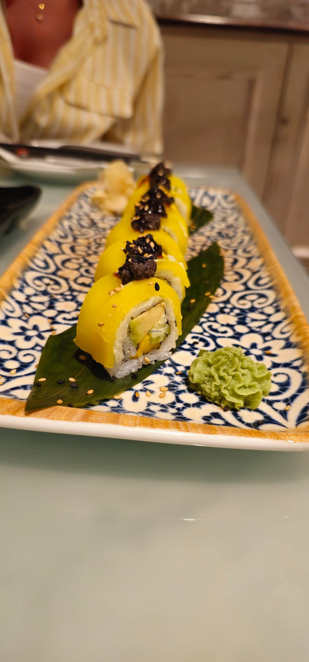 Really nice place with loads of vegan options and non vegan options (for my partner) it's nice to find places like this that have more than one choice of vegan dishes. I ordered the vegan chicken maki, the mango maki and the sundried tomato maki. Really different and really nice