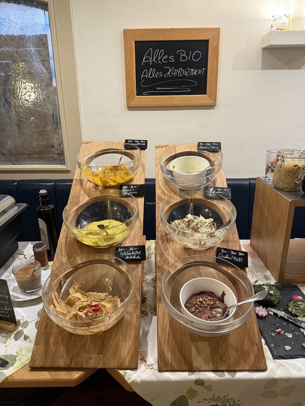 Ein vollwertig veganer Brunch! Hier findet man keine Fertigprodukte, sondern hausgemachtes Brot (auch glutenfrei), vegane "Eier"speise, verschiedene Porridges, Aufstriche, fermentiertes Gemüse, frisches Obst & Gemüse, selbstgemachten veganen "Käse", Joghurt und Müslis und Kuchen. Das Ambiente ist schön und beim Buffet wird zügig nachgebracht, wenn etwas wenig wird.