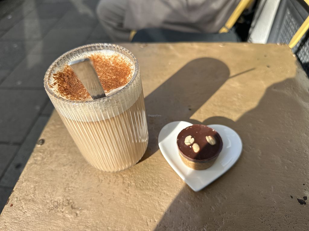 Kleines Café, diverse zuckerfreie vegane Kuchen. 🌱 und guter Chai Latte mit Hafermilch (auf Nachfrage). Nur ein bisschen hochpreisig.