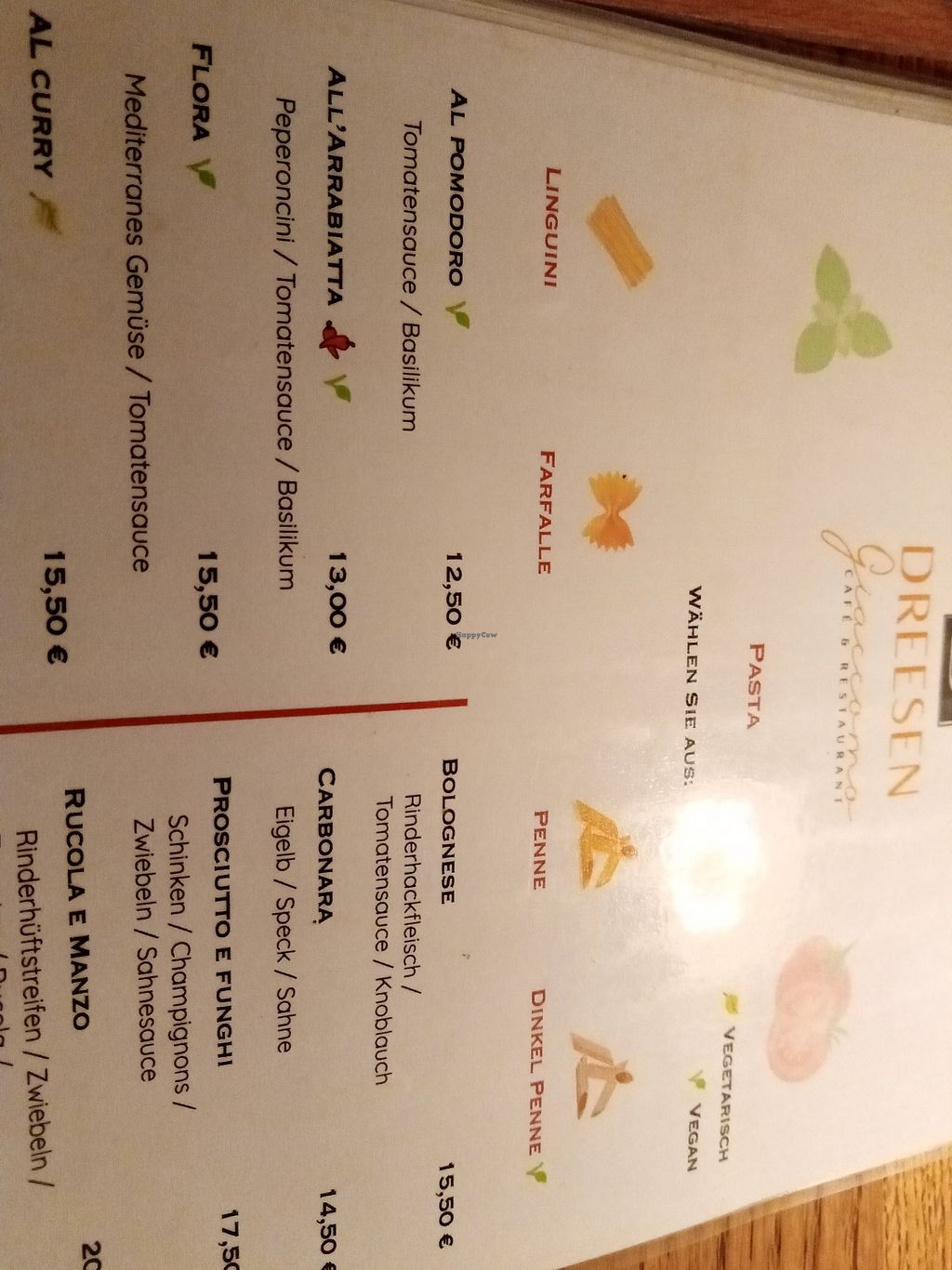 Serves meat, vegan options available. Italian-Mediterranean restaurant and café located in Bonn city center. Offers vegan and vegetarian dishes clearly marked on the menu, including options like crostinis, insalata mista, insalata serafina, pasta al pomodoro, pasta all’arrabiata, pasta flora, and thai curry. Also serves breakfast, lunch, and cakes. Open Mon 10:00-22:00, Tue-Fri 09:00-23:00, Sat-Sun 09:00-00:00.