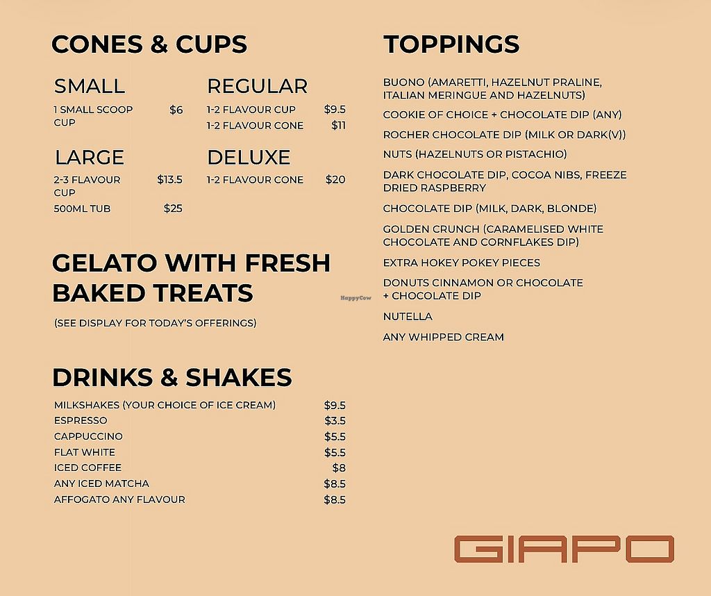 While vegan ice cream places have come a long way in the last few years, a lot of places still sell icy ice creams or those that taste like coconut, no matter which flavor you get. Giapo doesn't have those problems. It's smooth with bold, distinctive flavors. Is it touristic and overpriced? Without a doubt. But it's fun and delicious, and there are lots of vegan options, from flavors to cones to cookies to more!