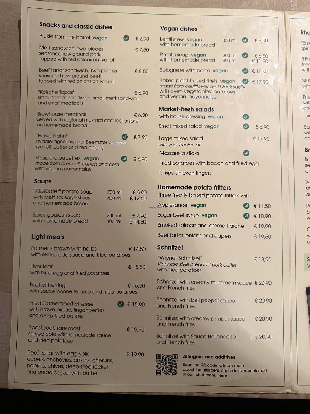 It's a traditional cologne brewery so it's great that they offer modern vegan food besides the traditional German meals. It's a bit sad, that the only vegan labeled item is fancy, it would be nice to have one or two traditional food items as a vegan version on the menu.