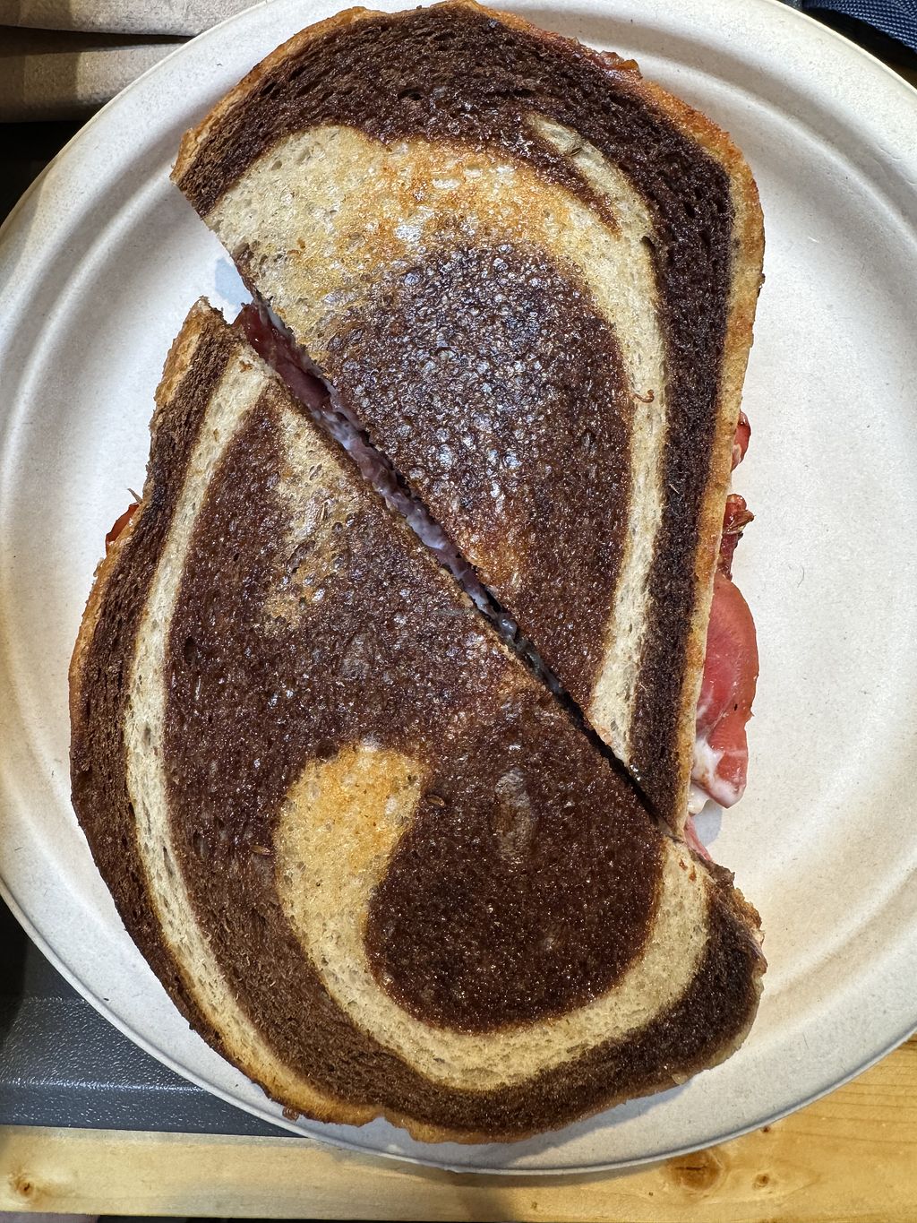 The menu online looked good so we decided to come out here without knowing the area at all. We didn’t realize it was in a food court and were a little worried we had made a mistake. But we ordered the summer spinach salad, tofu piccata and nduja toast, and it was all so good. The toast was one of the more creative veggie toasts I’ve had—lupini beans, fennel and romesco, so yum. I highly recommend. Think we might want to try the Reuben next time.