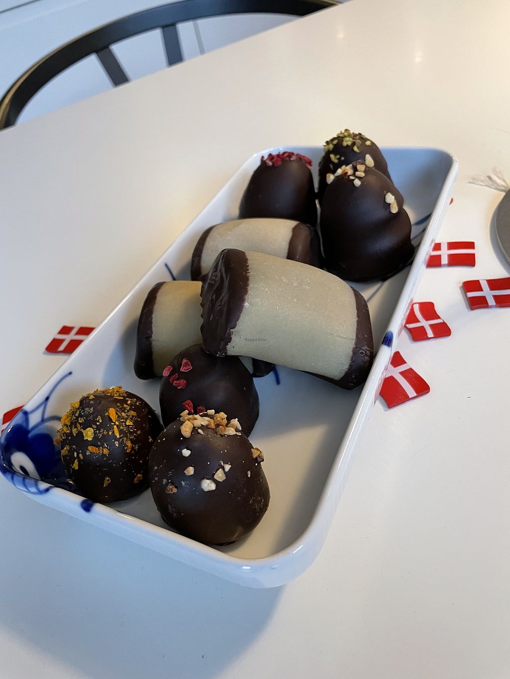 Another location. Confectionery vendor at Fisketorvet (located at lowest floor in "Kajen" section). Sells vegan options of Danish desserts like flødeboller (chocolate covered marshmallow), and different other varying confectioneries like macarons, using aquafaba as a replacement for egg. Open Mon-Sun 11:00-21:00.